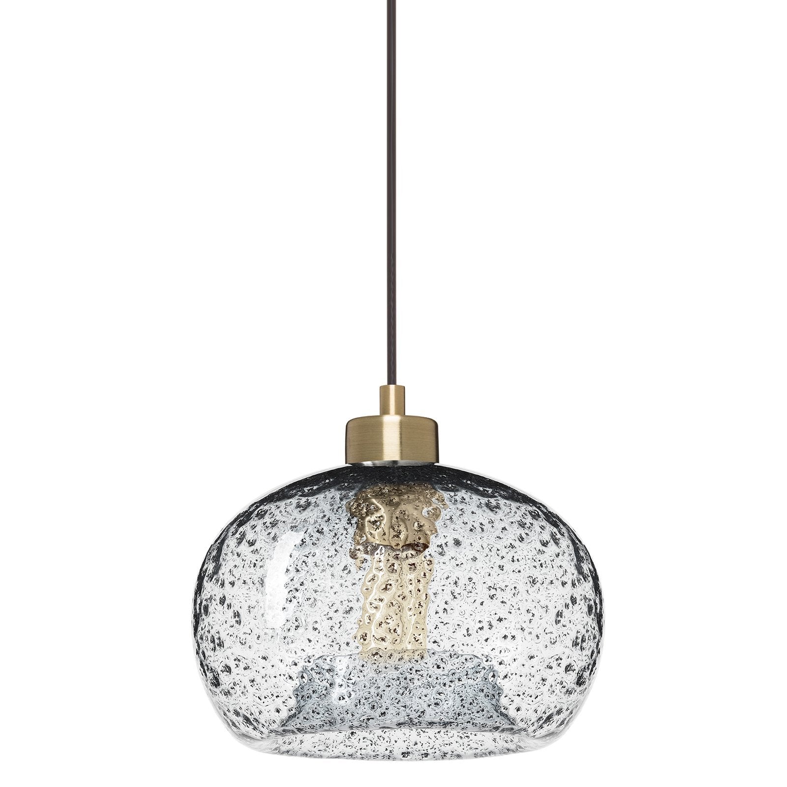 CASAMOTION Pendant Light Handblown Glass Drop Ceiling Lights, Rustic Hanging Light Seeded Clear Glass with Black Sand Powder, Brushed Brass Finish