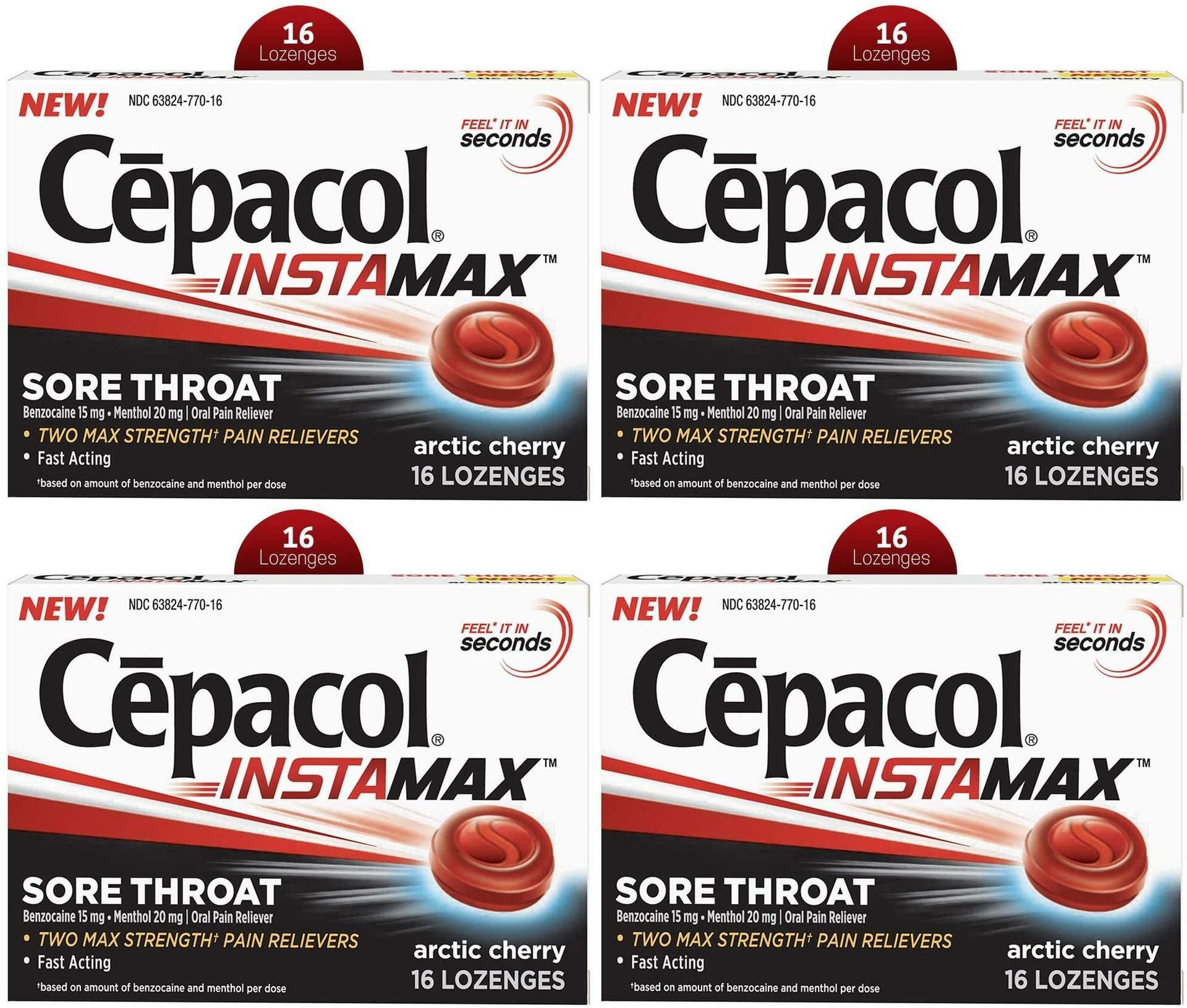 Cepacol InstaMax Sore Throat & Cough Drop, Artic Cherry 16ct 4 PACK EXP 6/22