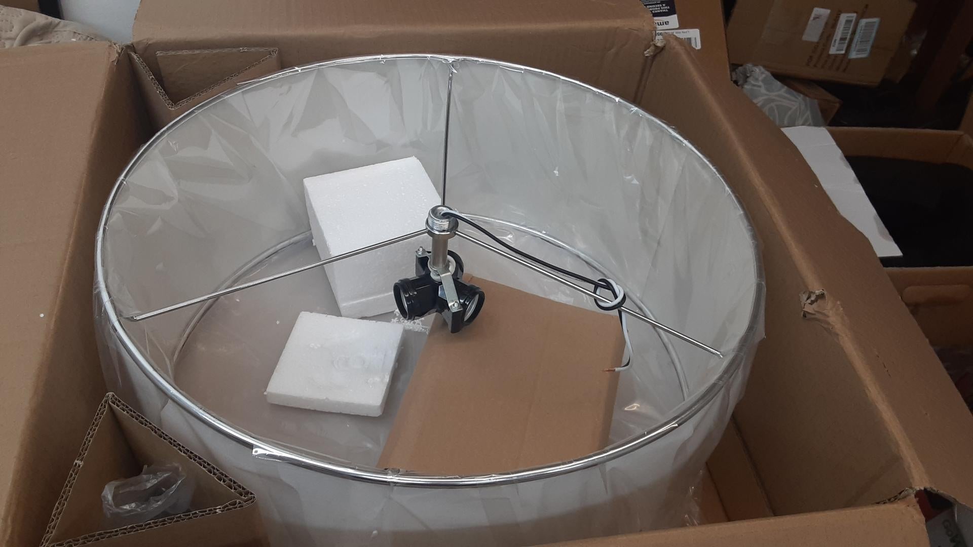 Designed with a finely crafted white linen fabric shade, our ceiling light distributes even
