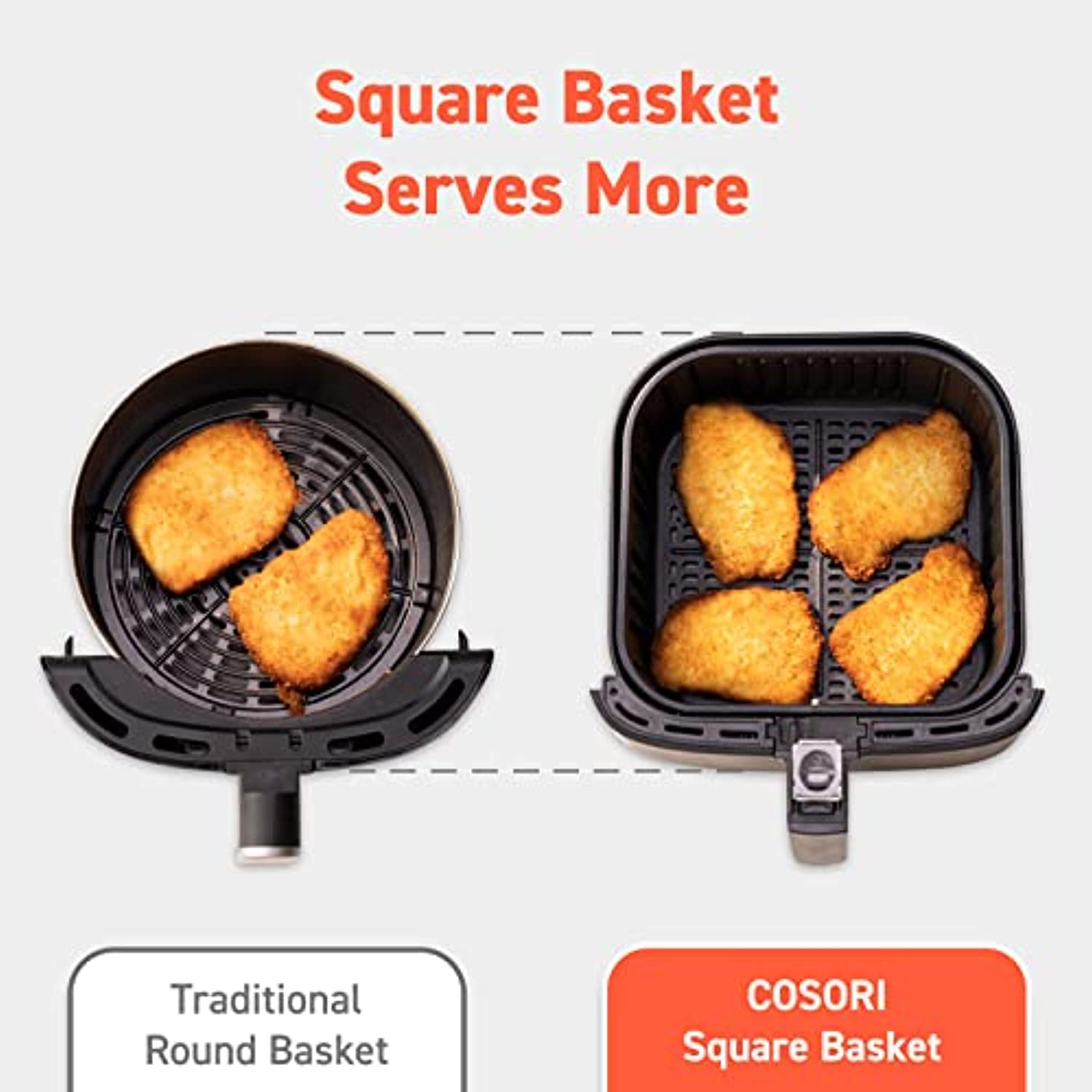 - MESS-FREE COOKING: The removable, dishwasher-safe baskets have nonstick coating that makes cleanup quick and easy. Find more COSORI air fryer accessories by searching C158-6AC.