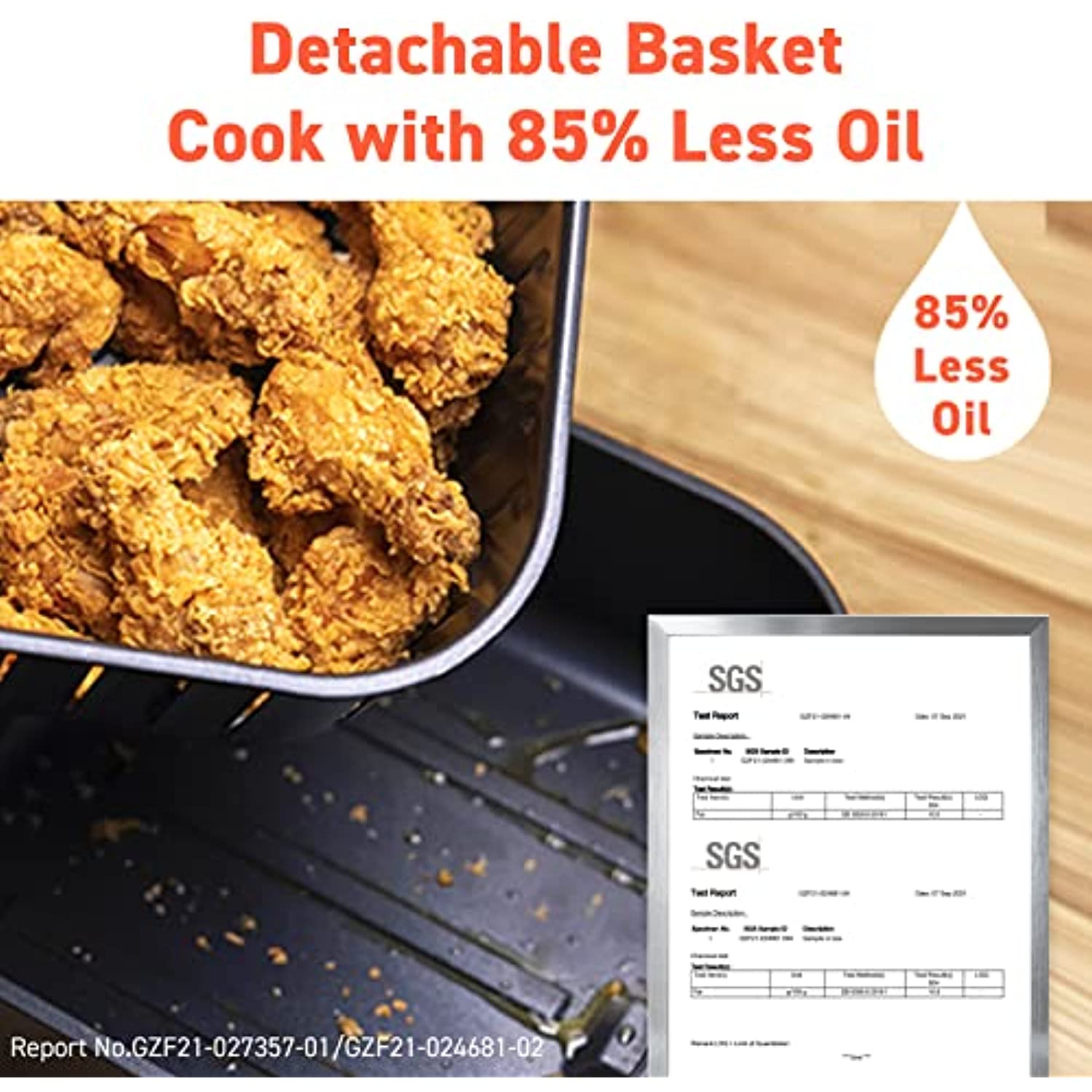 - LARGE CAPACITY: The air fryer's spacious 5.8-quart square baskets can fit a whole 5-pound chicken. Additionally, the corner spaces provide more cooking capacity and flexibility than round designs. Cook the perfect amount of food for 3–5 people in one go.