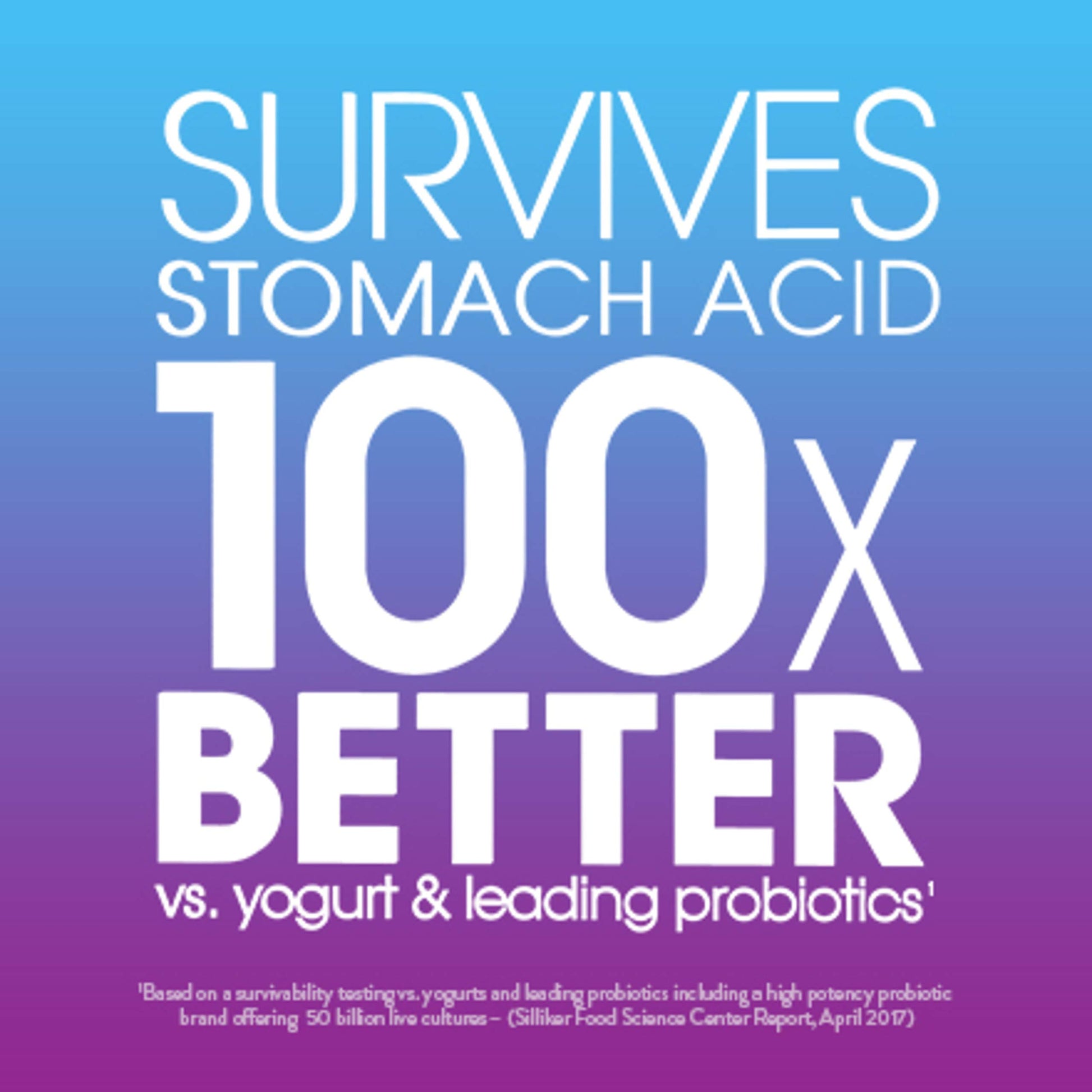 - BC30 probiotic survives 10X better than other probiotics, including yogurt