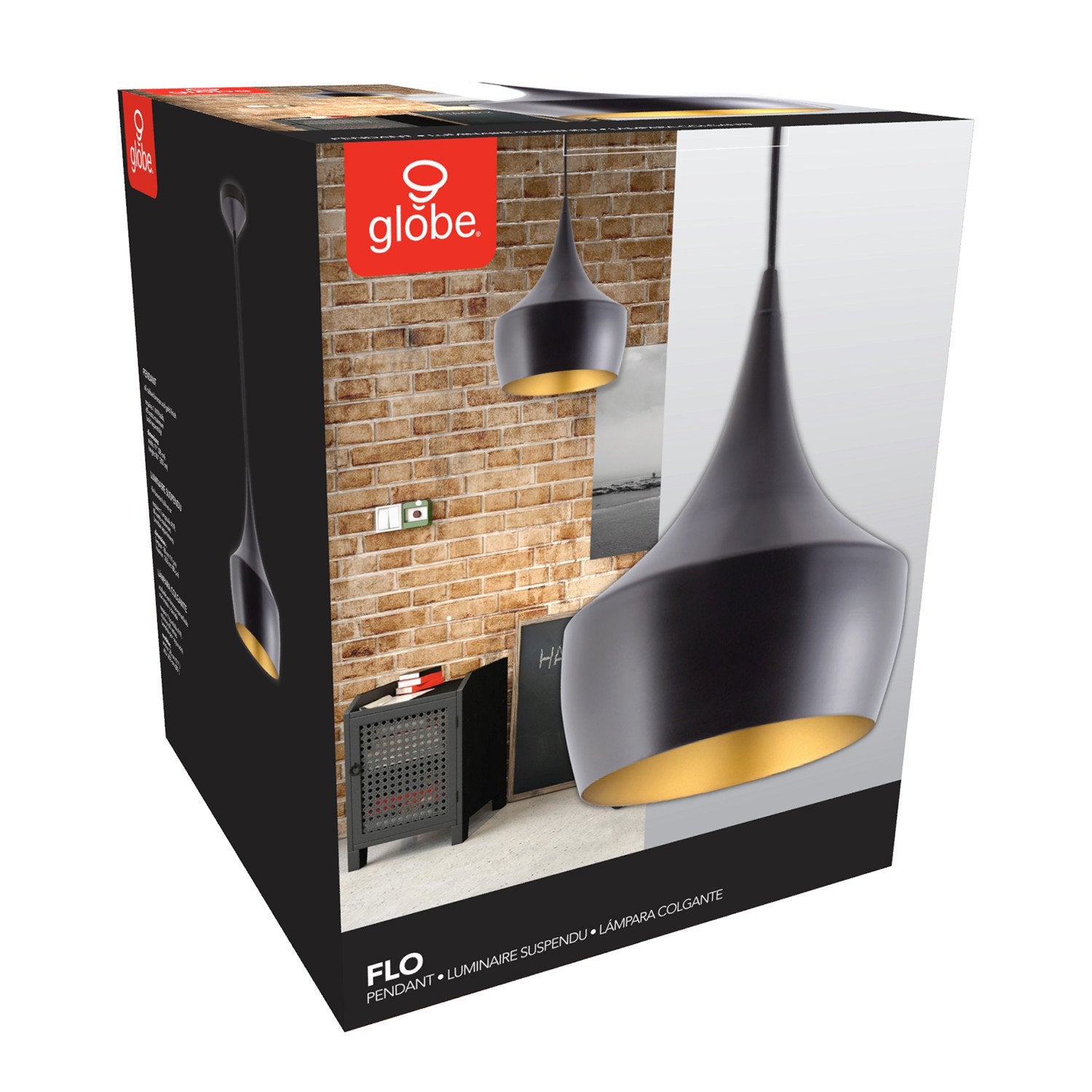 Globe Electric Flo 1-Light Pendant, Matte Black, Gold Interior 63871