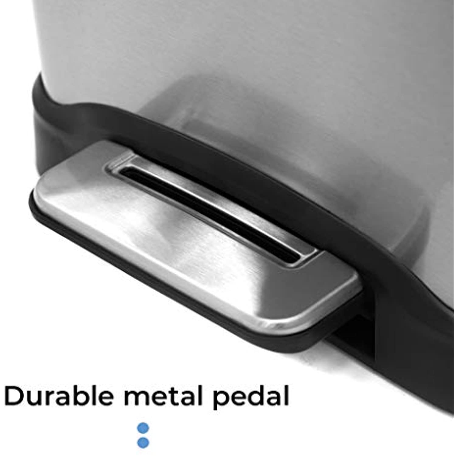 The clear coated stainless steel finish with the timeless design makes this 50 liter dual compartment trash bin ideal for placement in the kitchen, office, or virtually anywhere in the home where you need waste management.