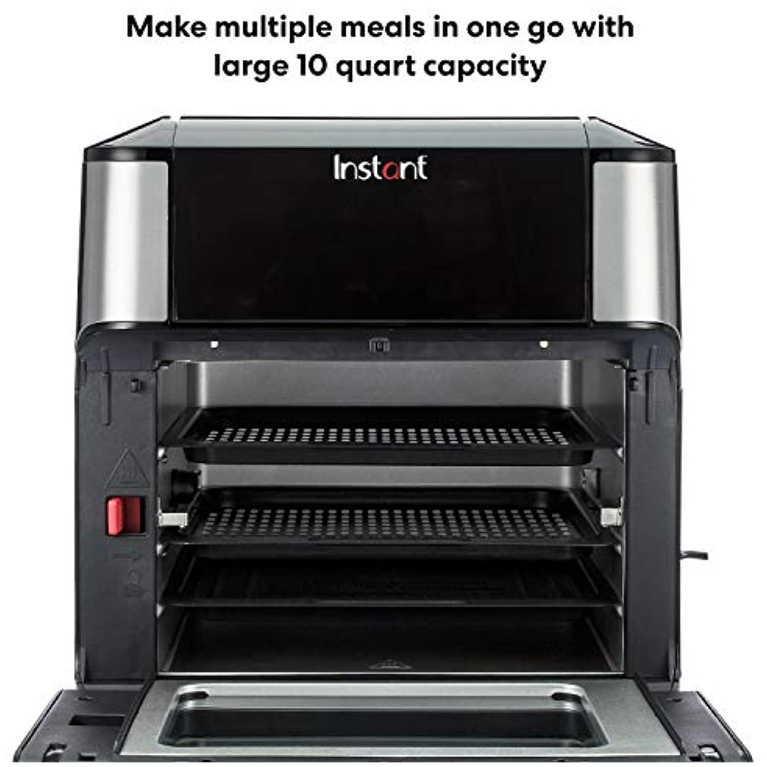 Create healthier versions of all your family’s favorite fried foods. From fresh or frozen, from air fryer to rotisserie — the Instant Vortex Plus 10-Quart 7-in-1 Air Fryer Oven crisps to perfection with little or no oil. Experience a world of flavor with the touch of a button. Use the preset Smart Programs to easily roast, broil, bake, reheat, air fry, dehydrate or cook on a rotisserie. Air fryers make juicy chicken wings and crispy fries, onion rings and other vegetables a big hit. Bake fluffy cinnamon rolls. Roast chicken parmesan, stuffed peppers and garlic potatoes. Broil a perfectly flaky salmon fillet. Reheat leftovers in a jiffy. You can even dehydrate your own jerky, fruit strips and kale chips. Simple touch controls are easy to use. And the Instant Vortex Plus Air Fryer Oven remembers your settings, so your favorites can be made with the touch of a button. Combine space efficiency on your countertop with versatility and say goodbye to your microwave, pizza oven, convection oven, dehydrator and toaster. Anything they can do the Instant Vortex Plus Air Fryer Oven can do better.