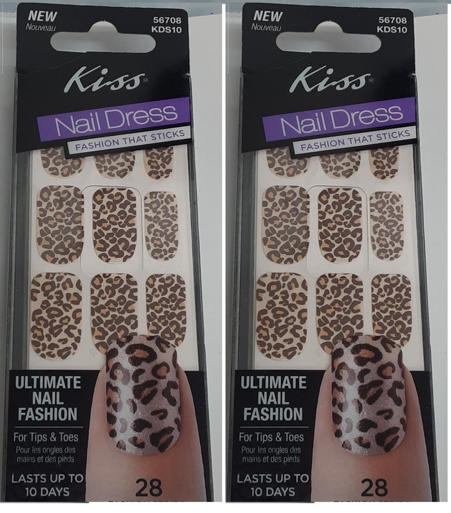 Kiss Nail Dress 28 Fashion Strips 56708, Leopard Design, LOT OF TWO - NEW