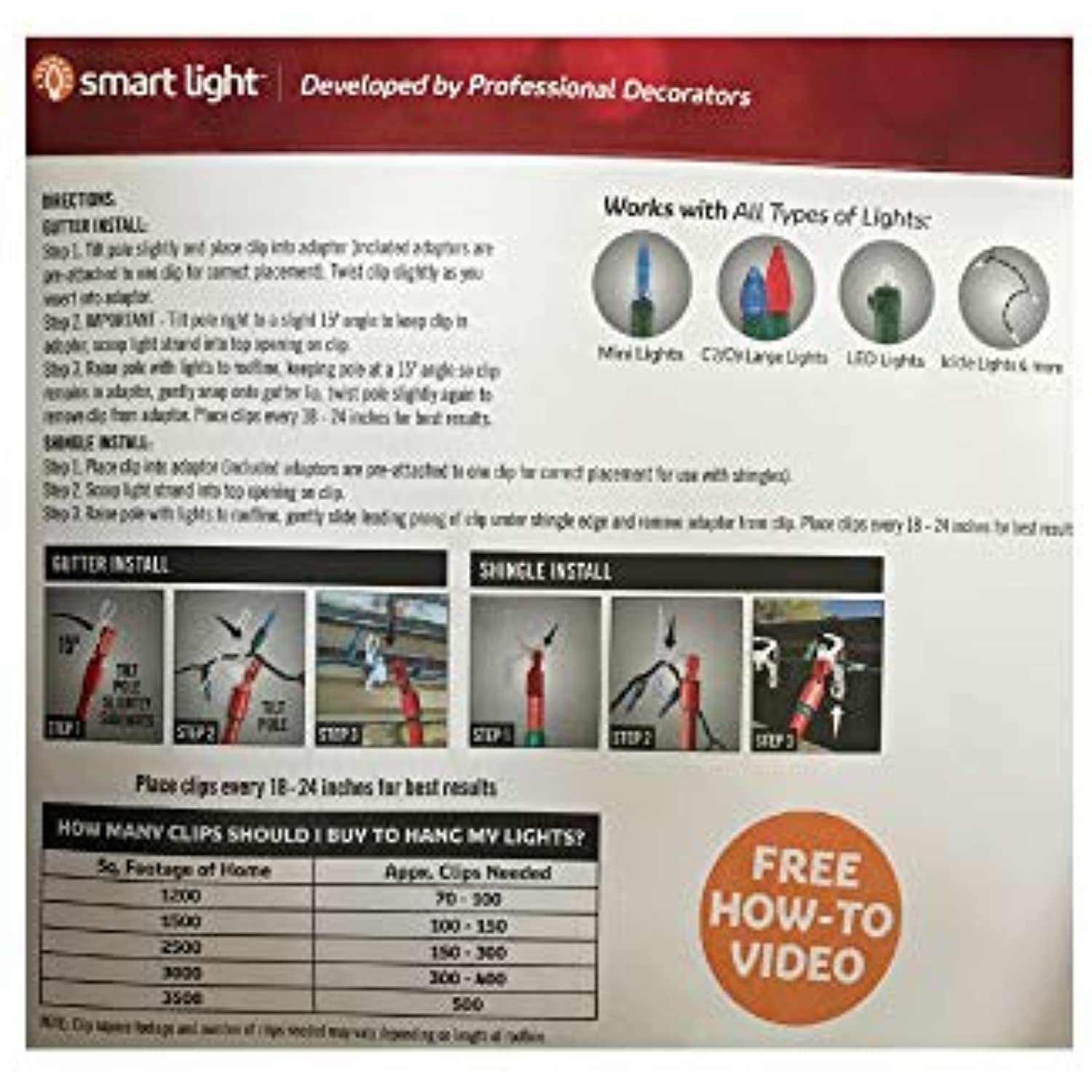 Ladderless Light Clips (50 Count) - Includes 2 Adapters for Gutters and Shingles