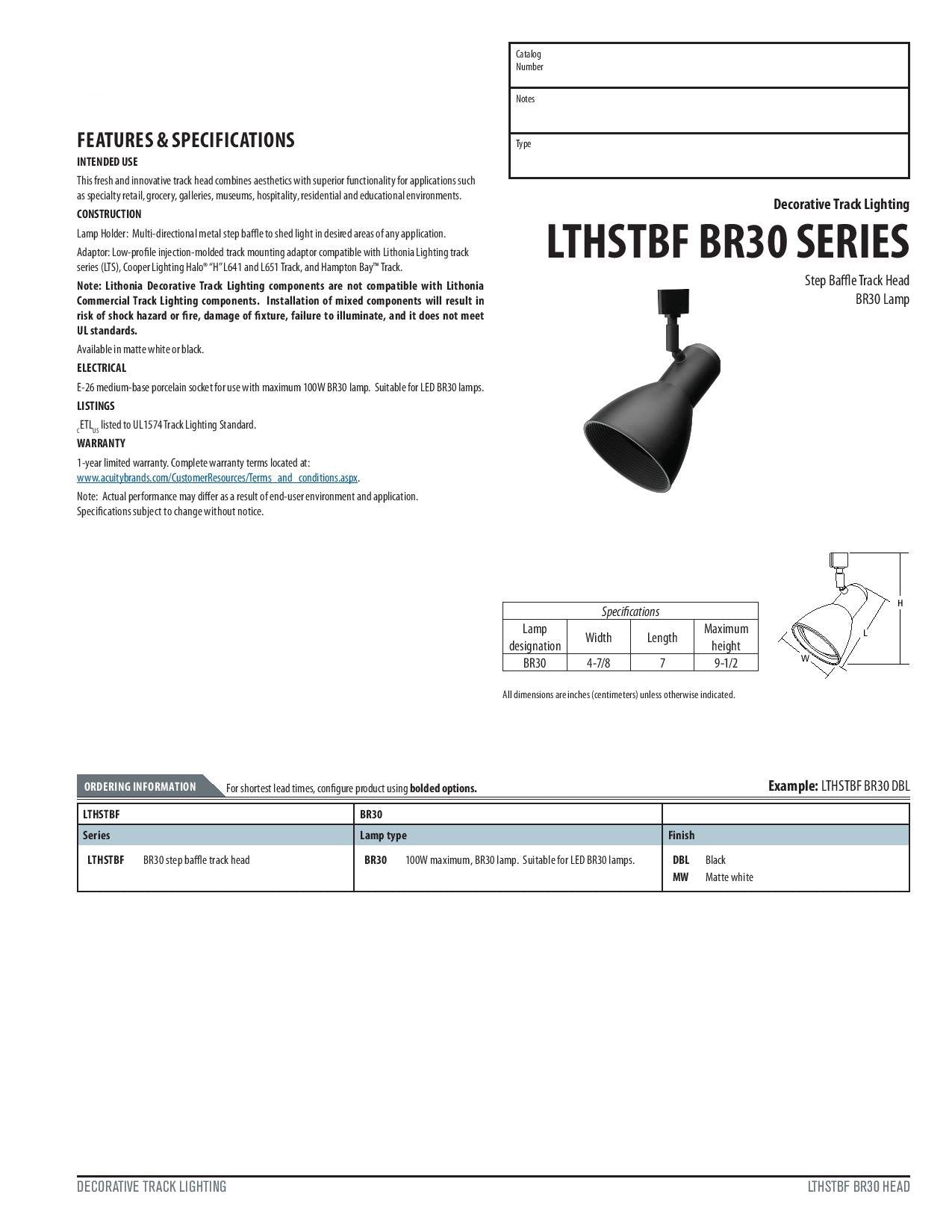 Lithonia Lighting LTHSTBF BR30 MW M4 Adjustable Decorative LED Baffle Track Head, 120 Volts, 100 Watts, Matte White