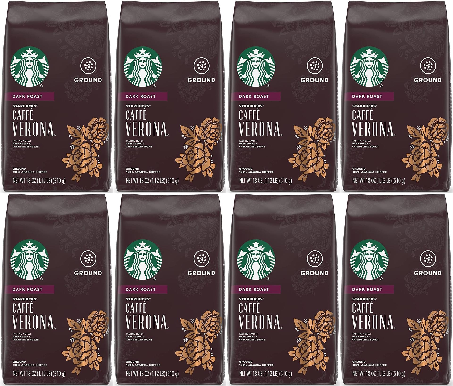 LOT OF 8 Starbucks Cafe Verona, Dark Roast, 18 OZ Best Before 10/2021