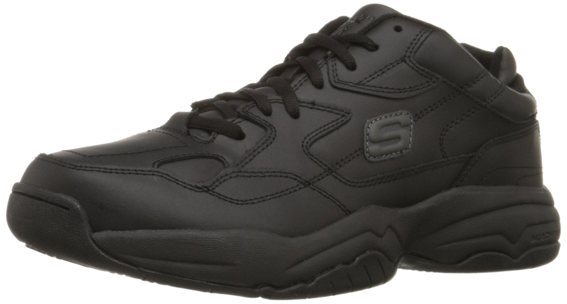 Skechers Work Men's Keystone Athletic Shoes - stay steady on your feet with superior slip resistance This leather sneaker offers sporty style with all the comfort you need for a long day on the job. The slip-resistant outsole offers sure-footed traction, even in slippery workplace conditions. The padded collar softly “hugs” your foot for a comfortable fit.