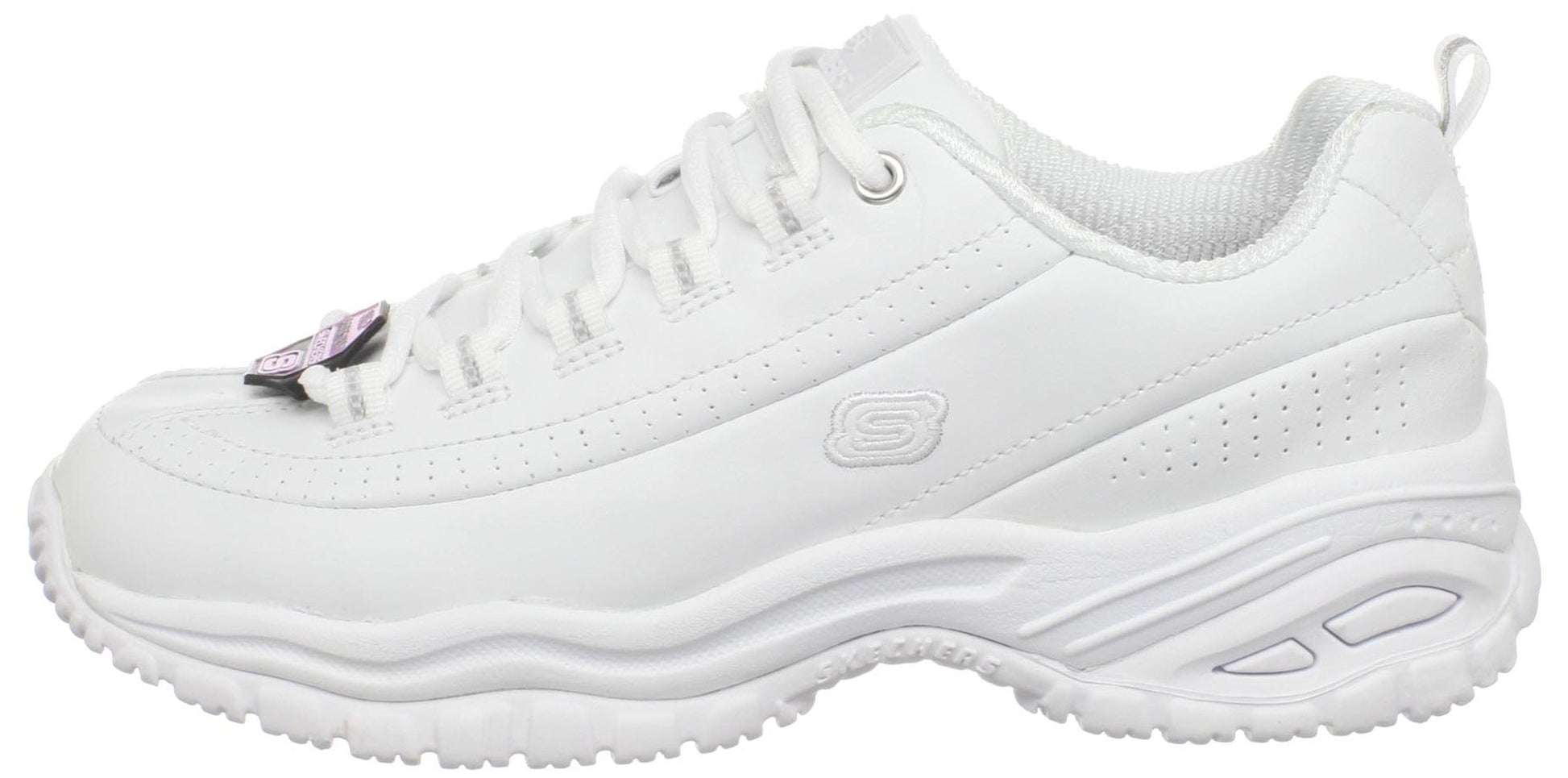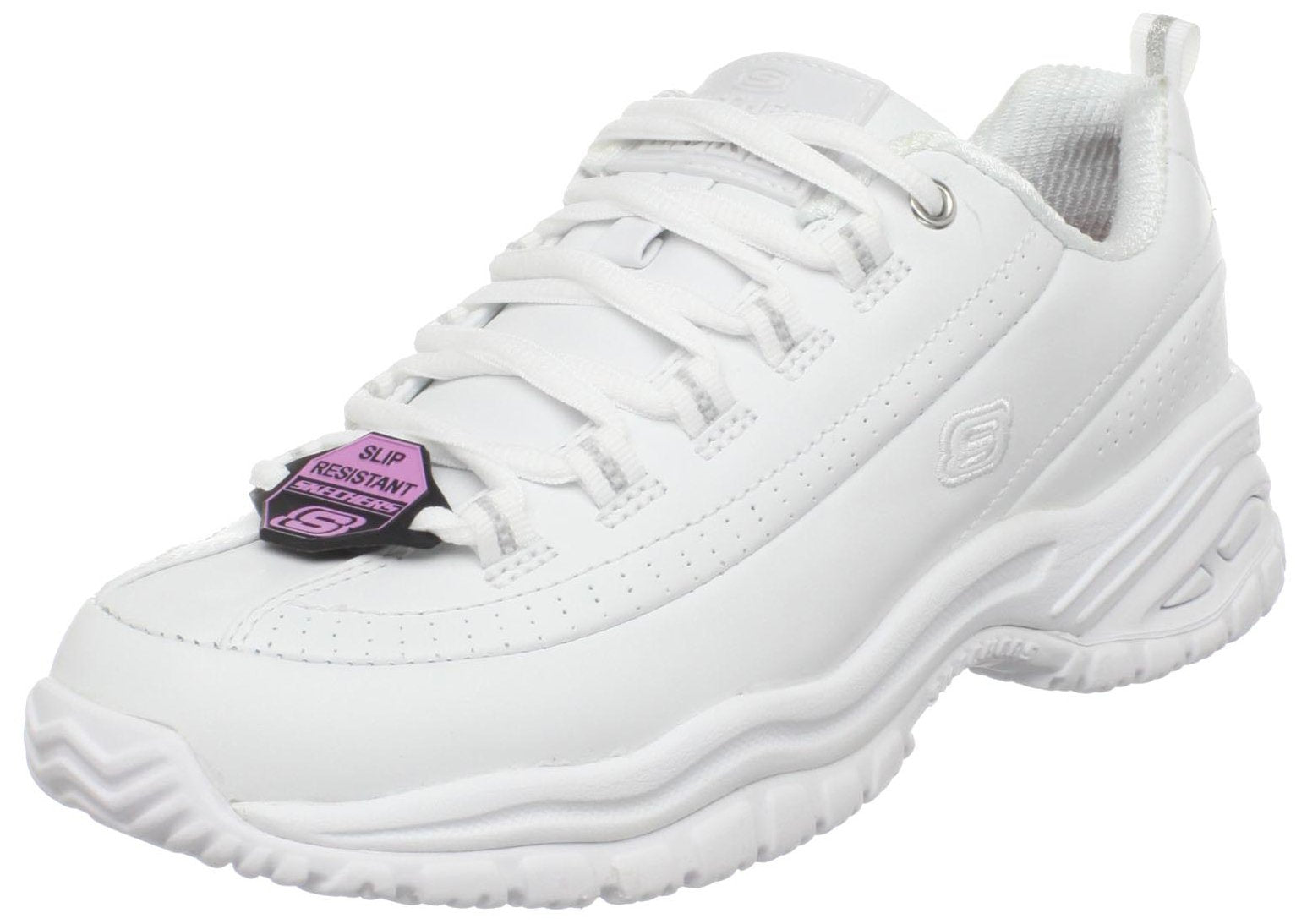 Soften up in the SKECHERS Work Soft Stride-Softie sneaker. Leather upper in a uniform ready casual sneaker with lace up front.