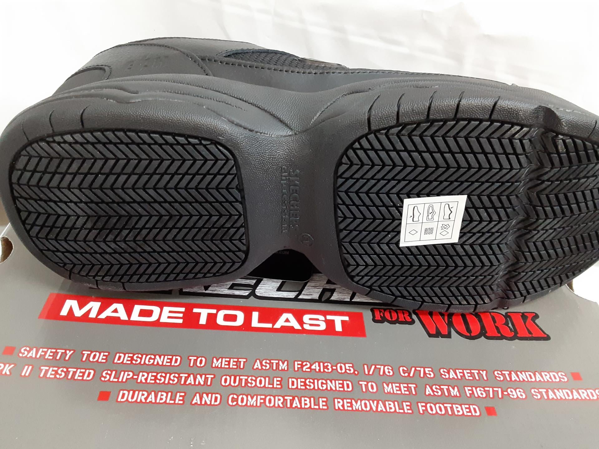 Comfort, durability and protection all come standard in the SKECHERS Work: Felix - Hawk Ridge shoe. Smooth leather, synthetic and mesh fabric upper in a lace up sporty slip resistant composite safety toe work sneaker with stitching and overlay accents. Shock absorbing midsole.