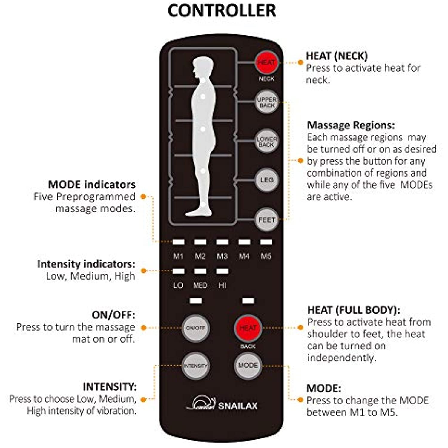 SNAILAX Memory Foam Massage Mat with 6 Therapy Heating,10 Vibration Motors *USED