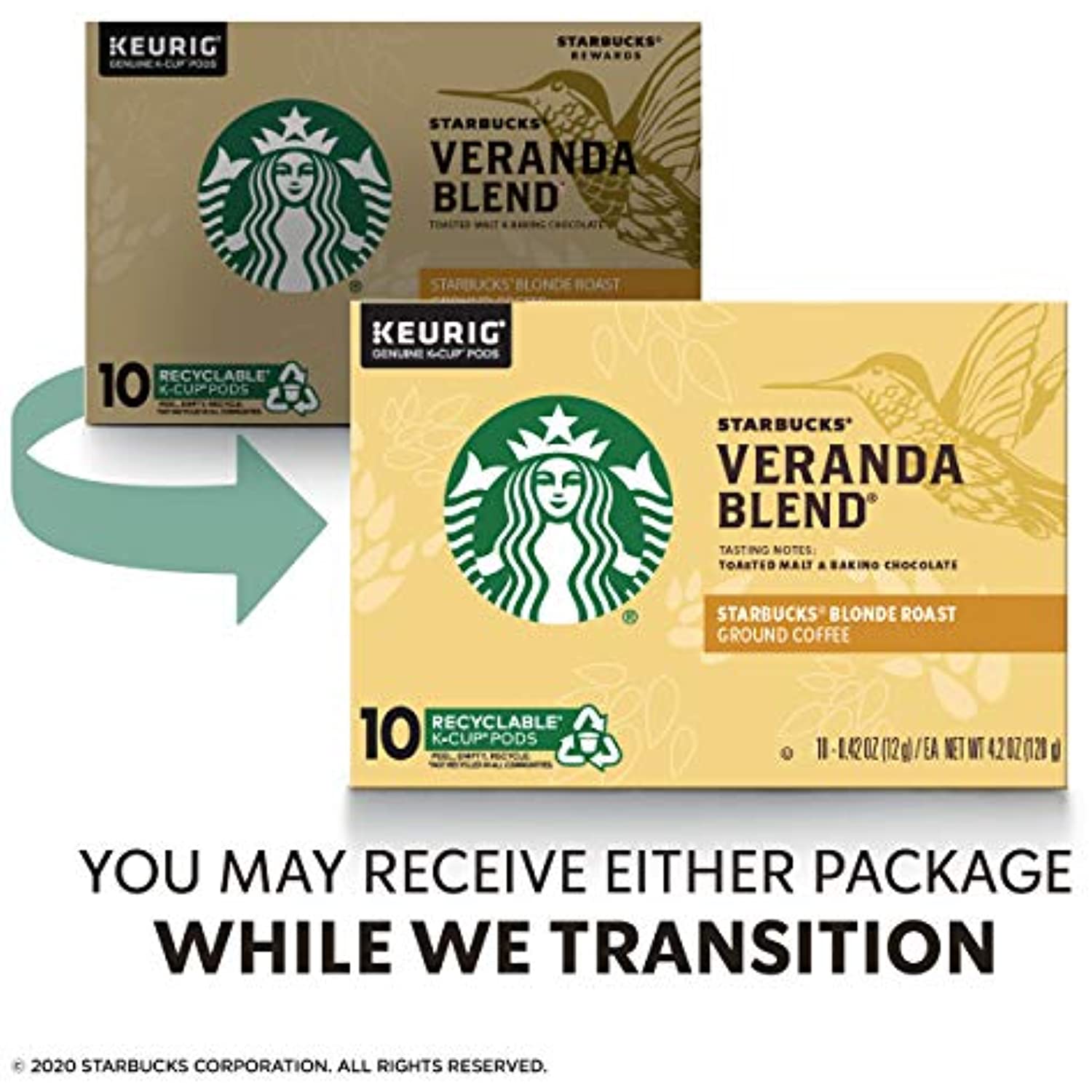 Starbucks Blonde Roast K-Cup Coffee Pods Veranda Blend for Keurig Brewers 6 boxes (60 pods total)