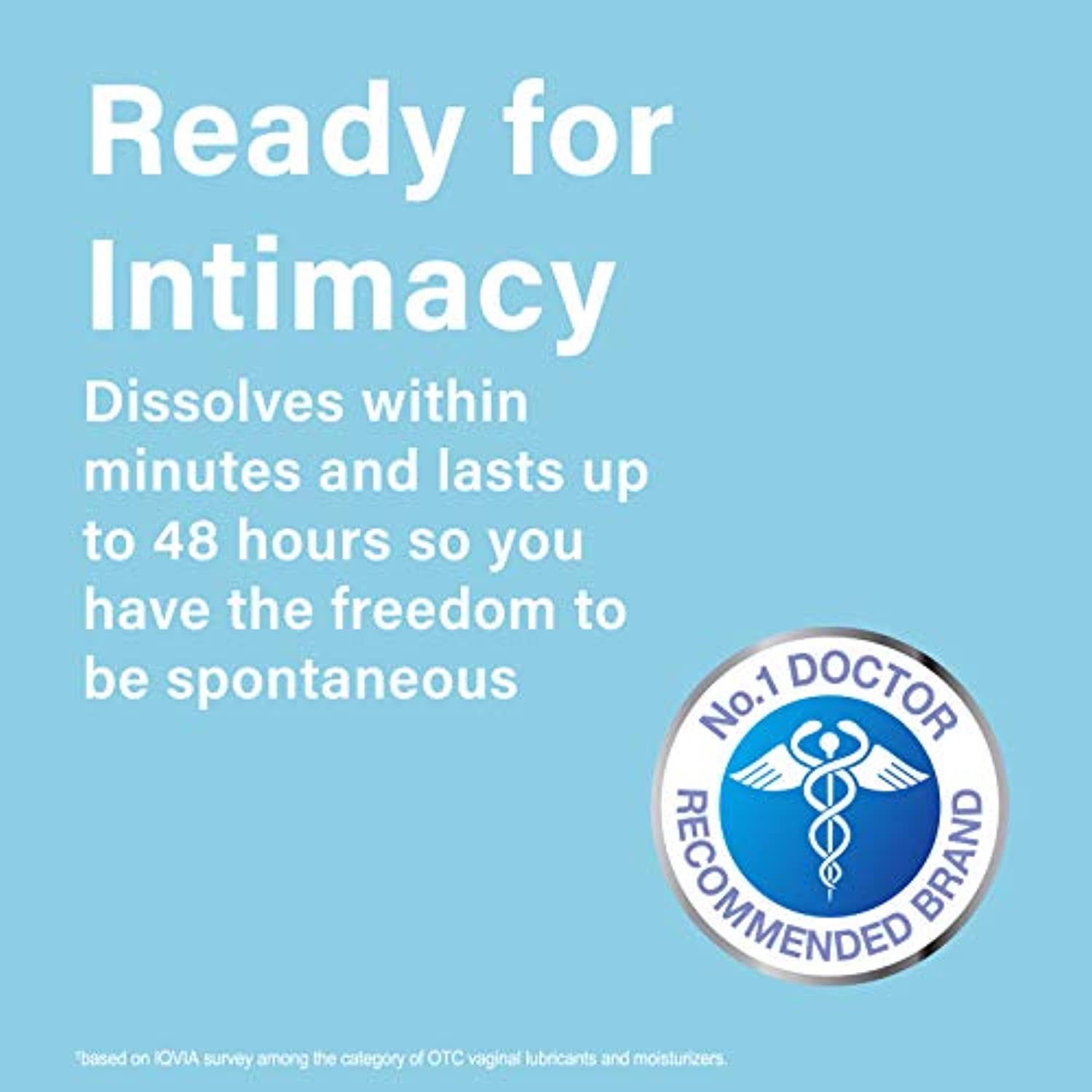 - READY FOR INTIMACY: Starts to dissolve quickly, gently releasing soothing lubrication that lasts up to 48 hours and allows you the freedom to be spontaneous