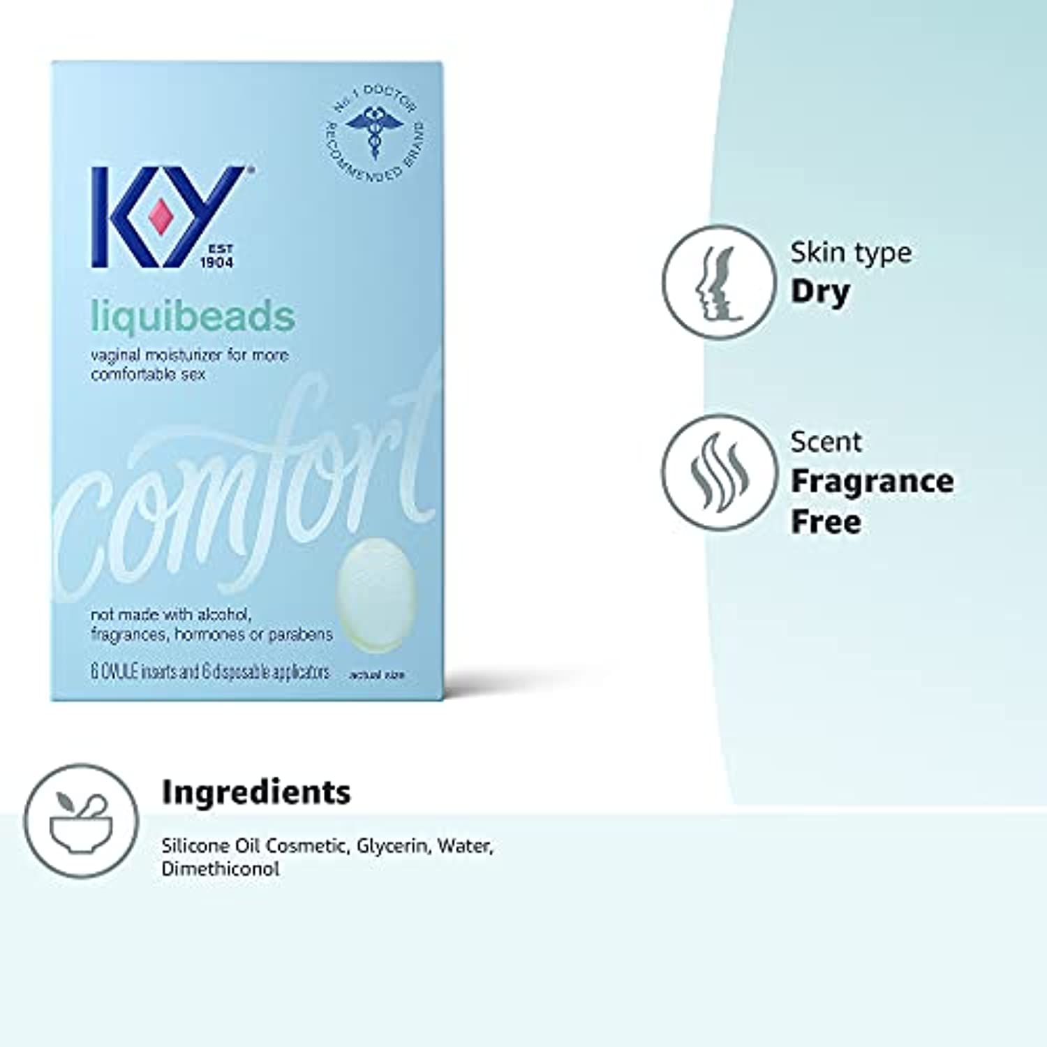 - K-Y LIQUIBEADS VAGINAL MOISTURIZER: Non-irritating silicone based lube not made with alcohol, fragrance, hormones or parabens; This product is compatible with natural rubber latex, polyisoprene and polyurethane condoms