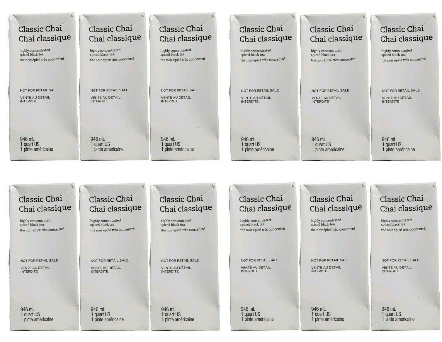 12 PACK STARBUCKS Classic Chai Concentrated Spiced Black Tea Latte 1QT Ea 10/20