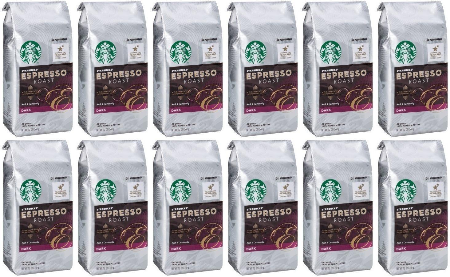 Starbucks Espresso Dark Roast Ground Coffee (12 Pack) 12 OZ EACH