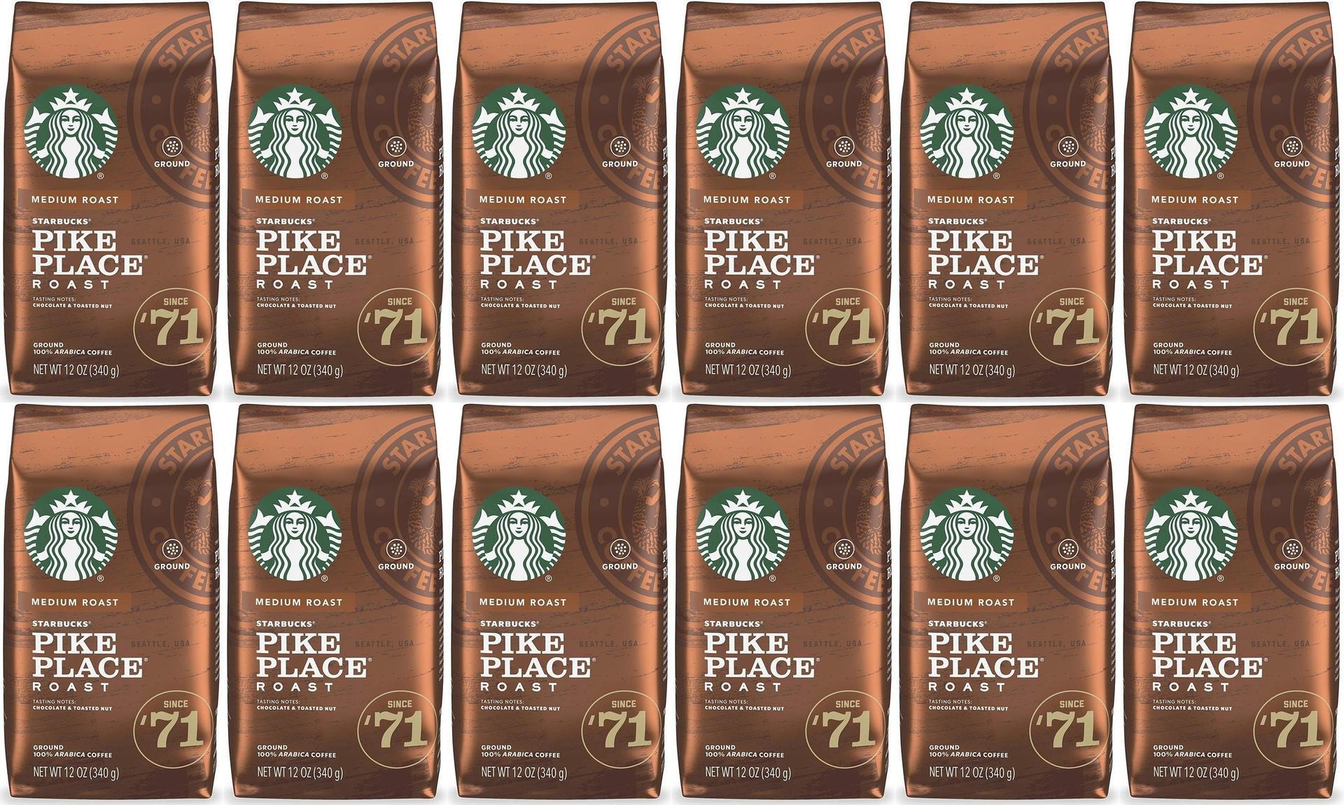 12 PACK Starbucks Medium Pike Place Roast Coffee Ground 12 oz Best Before 2/2021
