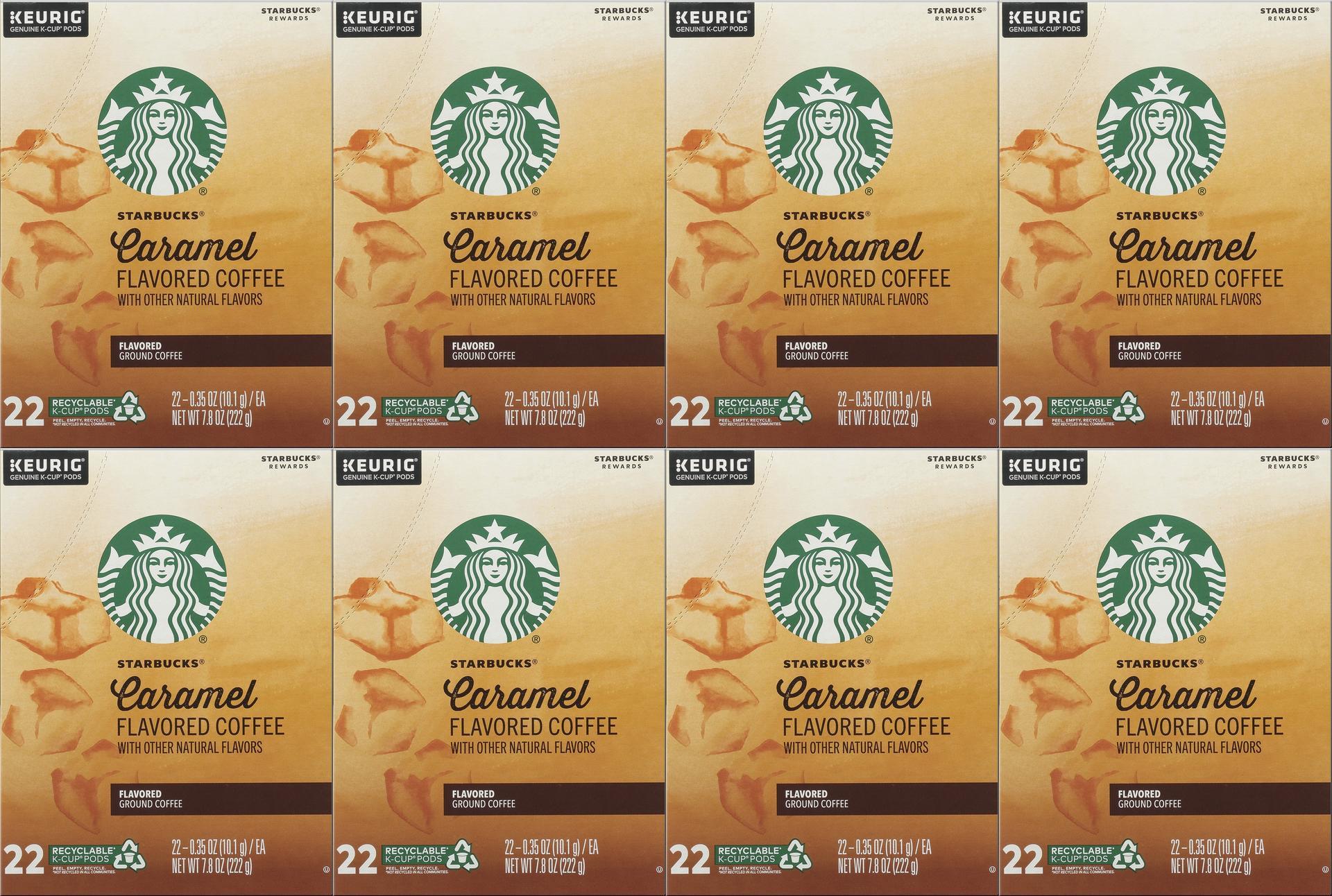 CONTENTS: Includes 8 boxes of 22 K-Cup pods of Starbucks Caramel Flavored Coffee