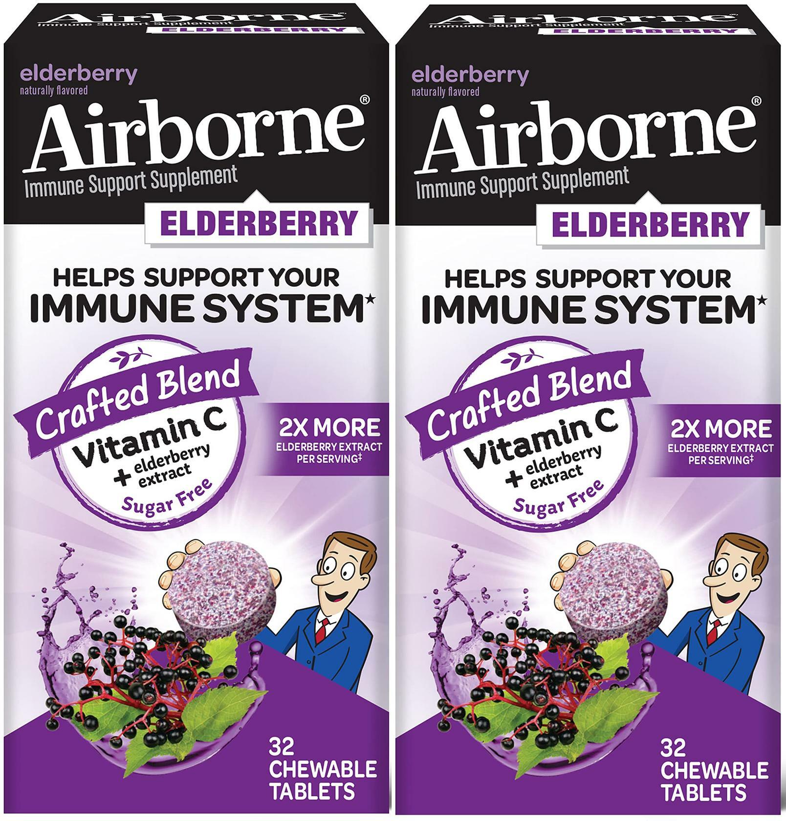2 Airborne Immune Support Supplement Elderberry Flavor 32 Chew Tablets exp 6/23
