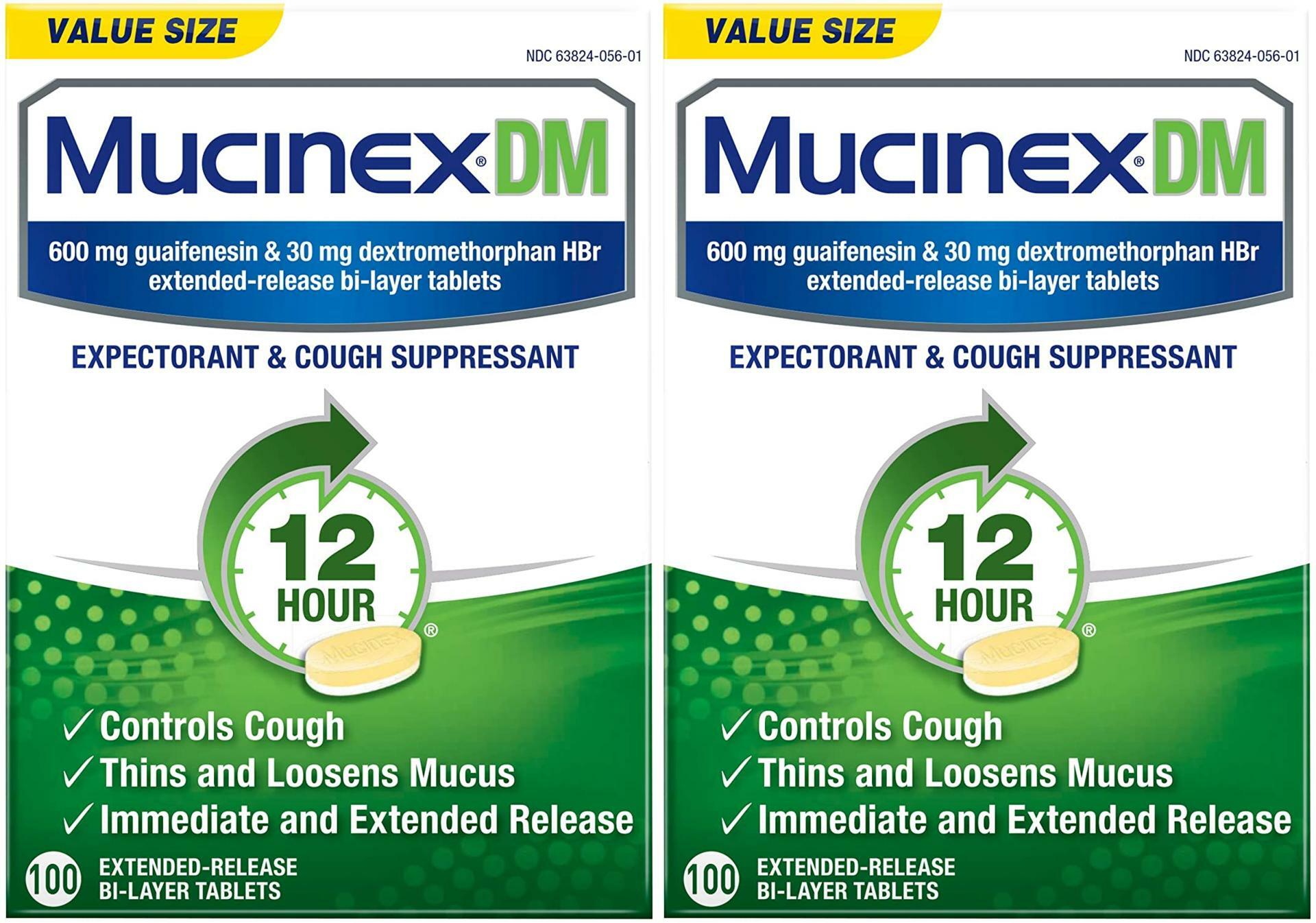 2-Mucinex DM 600mg Expectorant & Cough Suppressant 12 Hour Relief 100 Tablets