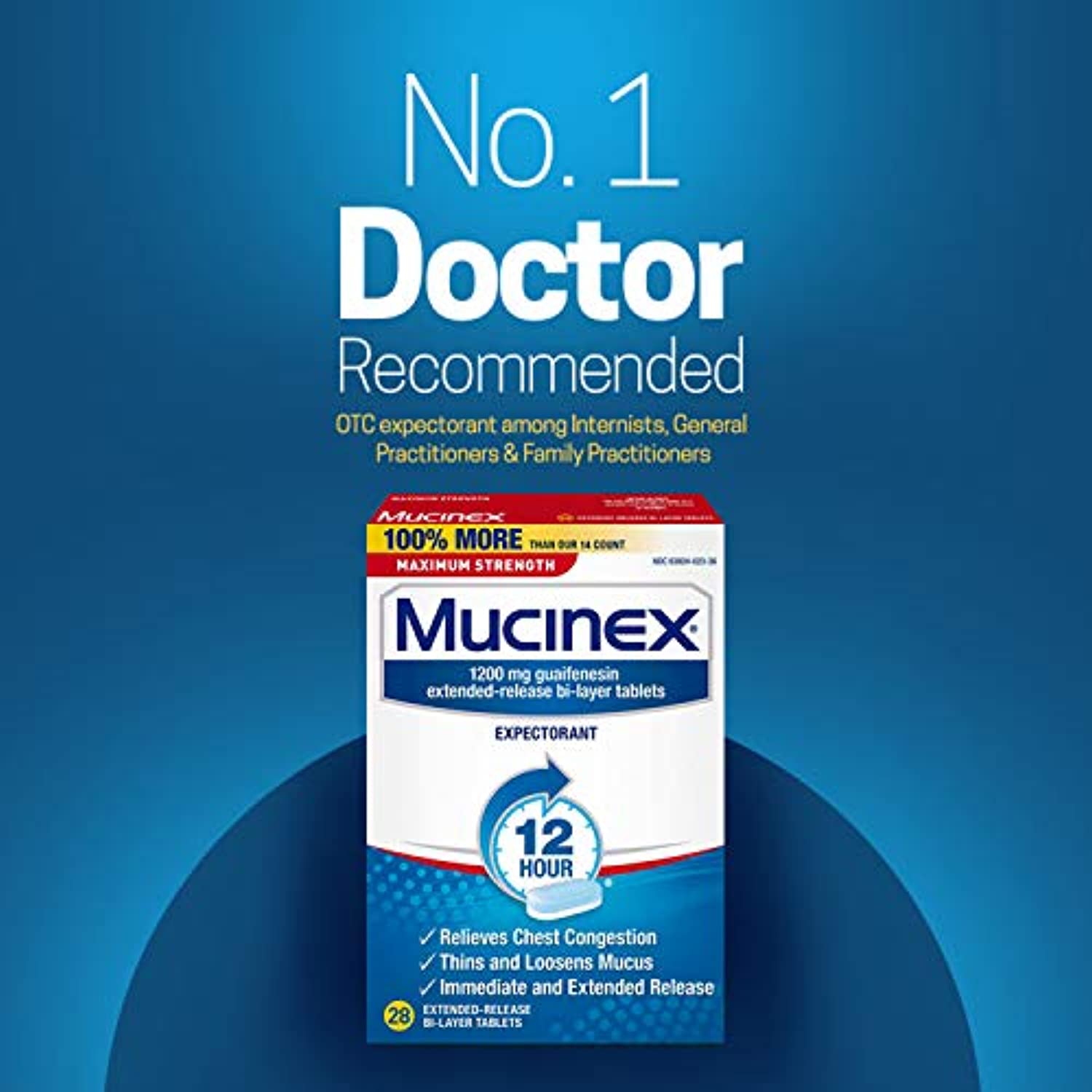 Only Mucinex has an extended release bi-layer tablet to deliver maximum-strength congestion medicine. The first layer is absorbed quickly by your body for fast-acting relief. The other layer dissolves slowly to continue relieving your chest congestion for 12 hours.