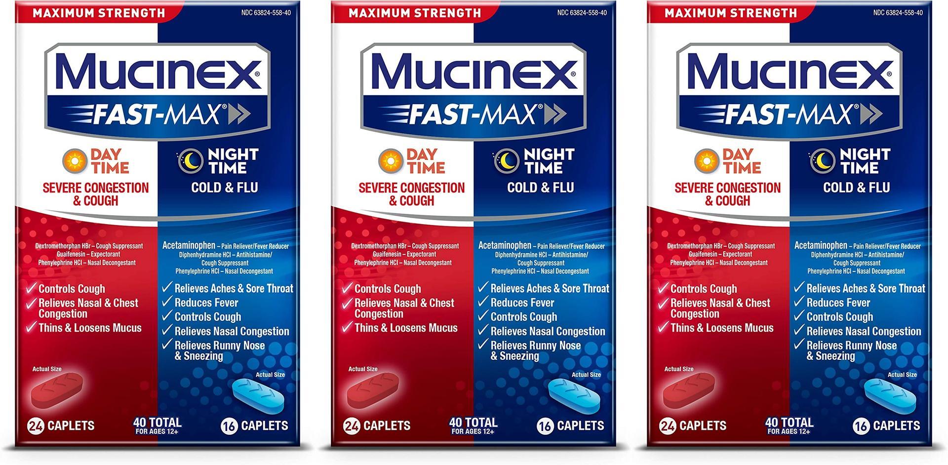 3x Mucinex Fast-Max Day Time Severe Cough Congestion Night Cold Flu Caplets 11/22