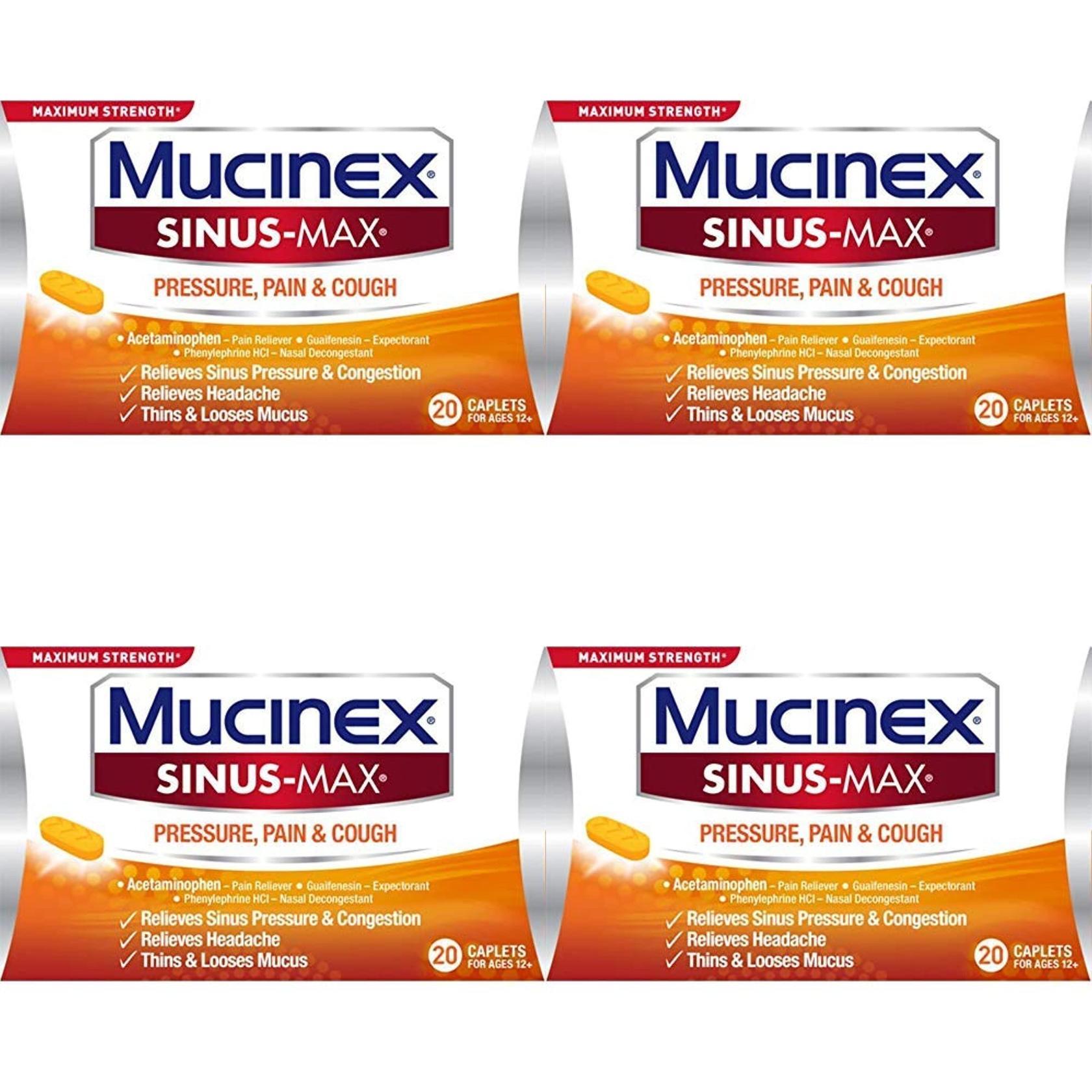 4 Pack Mucinex Sinus-Max Maximum Strength Pressure,Pain&Cough 20 Caplets EXP5/23