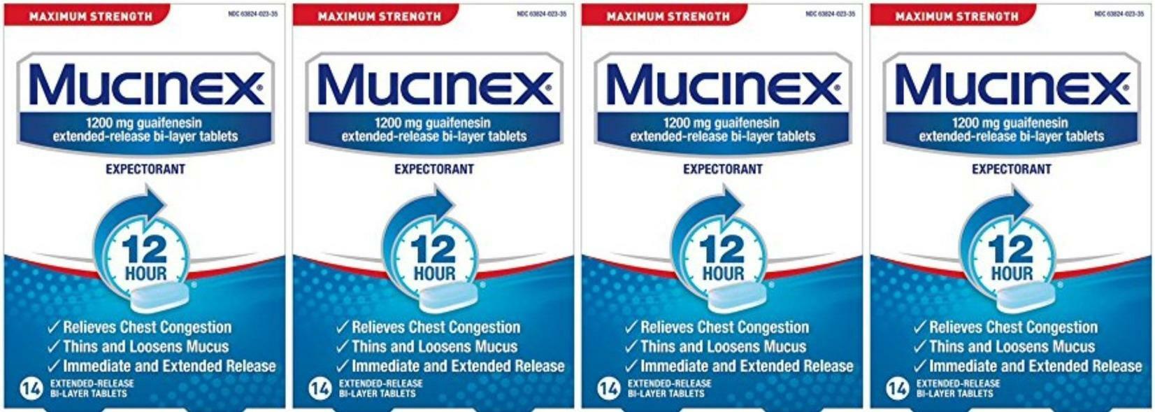 4 pack of Mucinex Maximum Strength EXP 7/2023 14 CT 56 Total Count
