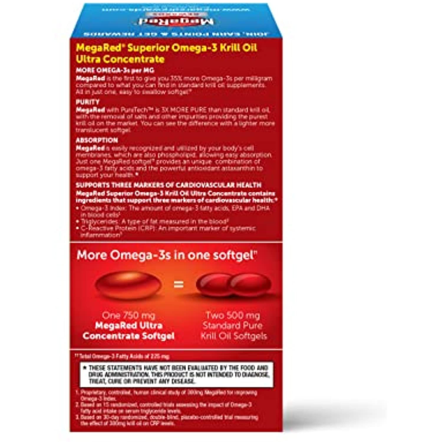 750mg Omega-3 Krill Oil Supplement, MegaRed Ultra Strength Softgels (80 Count in a Box), Has No Fishy Aftertaste and Has EPA & DHA Plus Antioxidant Astaxanthin