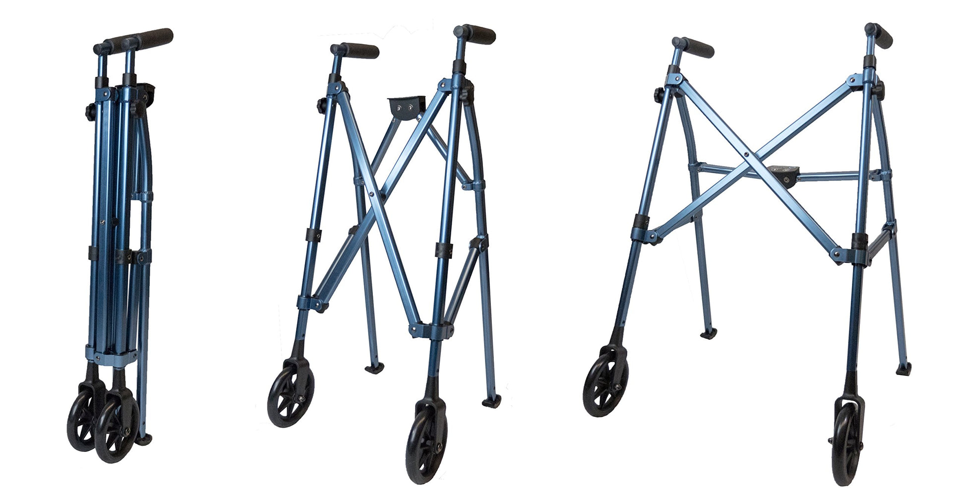 The new Space Saver Walker from Able Life is the worlds smallest folding walker. By simply lifting on the tab with your finger, your walker folds up into a 7 inch diameter. Weighing only 7.5 lbs., you no longer have to worry about your walker being too large and heavy while you travel or move around house. The new Space Saver Walker 2.0 features 6" wheels, a 400 lbs. weight capacity, and height adjustable handles. The Space Saver Walker from Able Life is the worlds most lightweight and portable walker for stress free traveling! It weighs less than 8 lbs, but supports up to 400 lbs, and with the lift of a finger, it folds 4x smaller than your average walker to quickly store in your car, shopping cart, the overhead compartment of an airplane, or discreetly by your side when not in use.