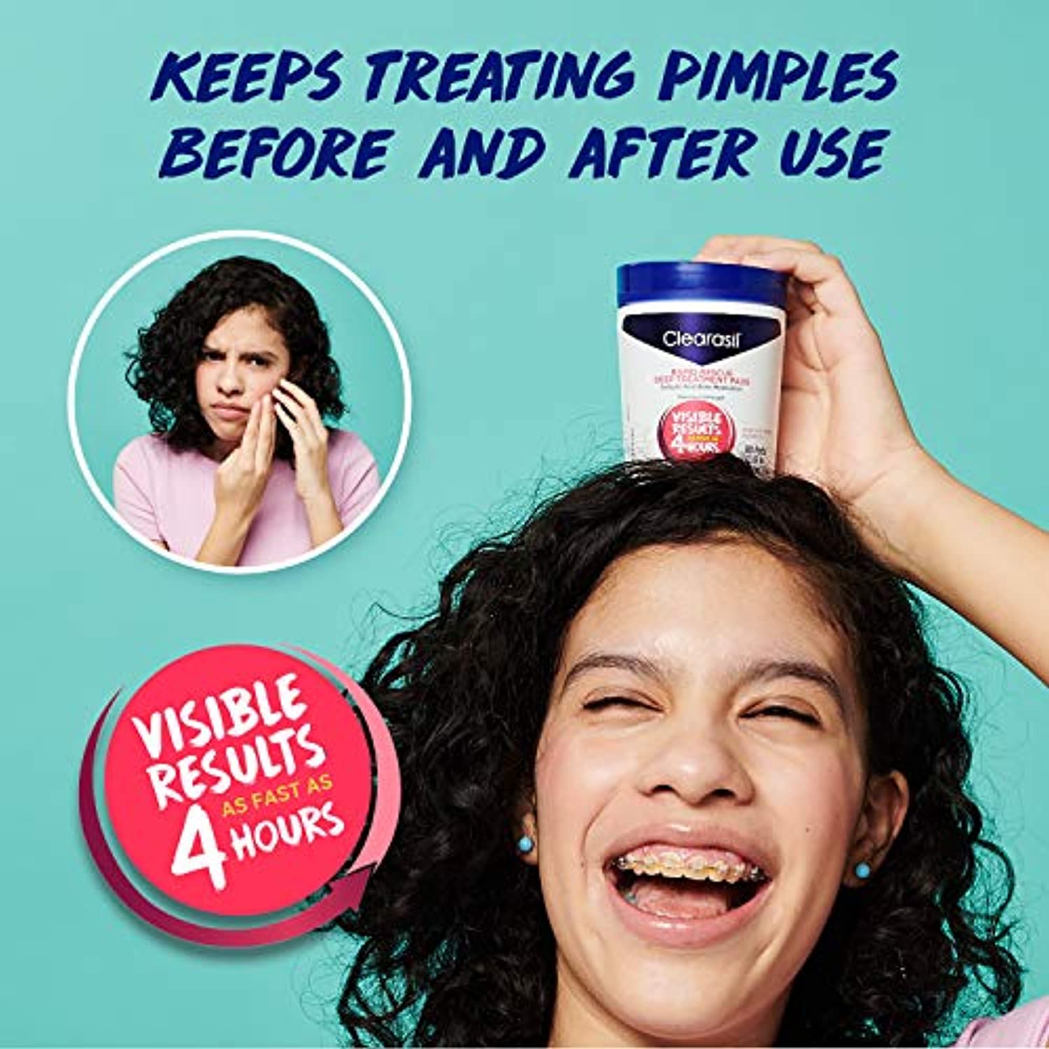Clearasil Ultra Rapid Action Face Pore Cleansing Pads cleanse and visibly reduce pimple size and redness in as fast as 4 hours! These Maximum Strength Face Acne Pads have active ingredient of Salicylic Acid 2% Acne Medication helps prevent blemishes for radiant skin.