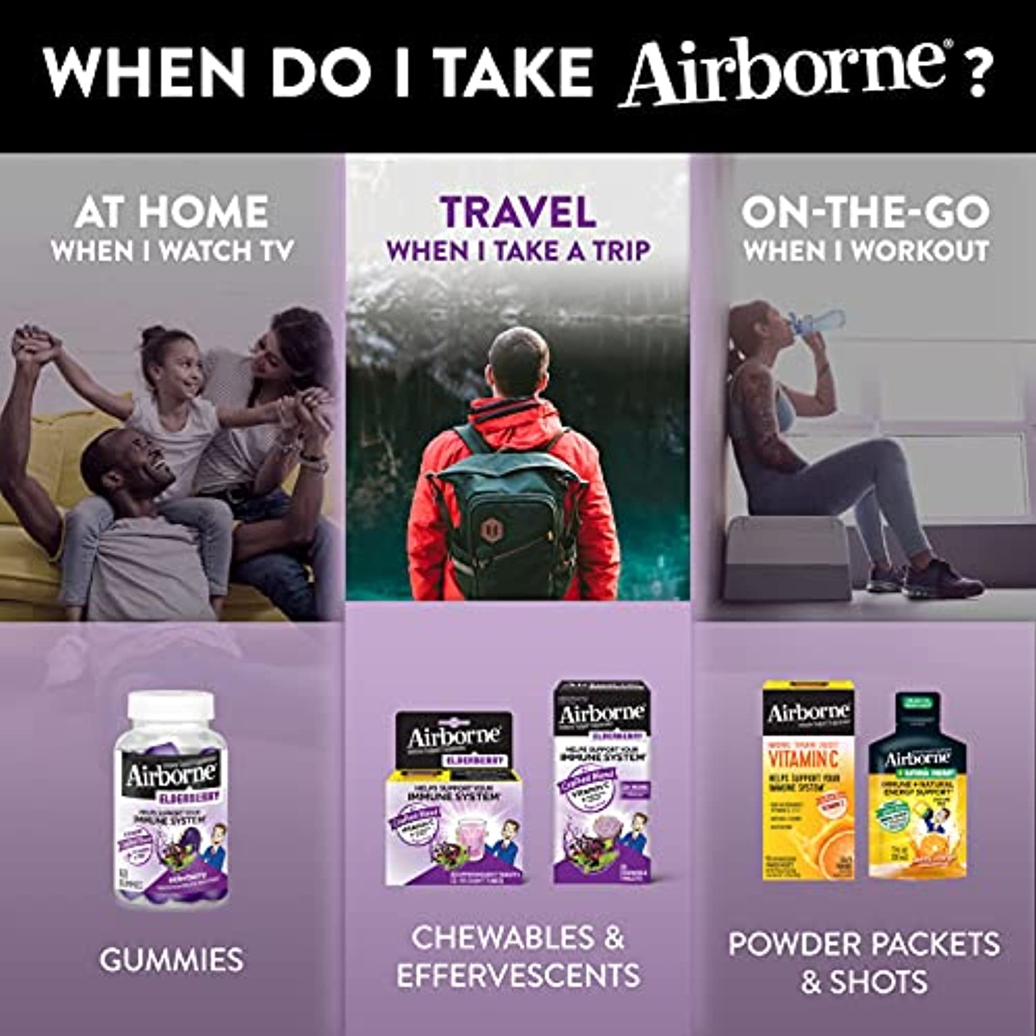 - WHY TO TAKE AIRBORNE: Airborne is the #1 Immune Support Gummy, Effervescent & Chewable Brand.¹ These tablets are easy & convenient for you or your family to take at home or on the go. Vitamin C is among the most important antioxidants in immune health.*