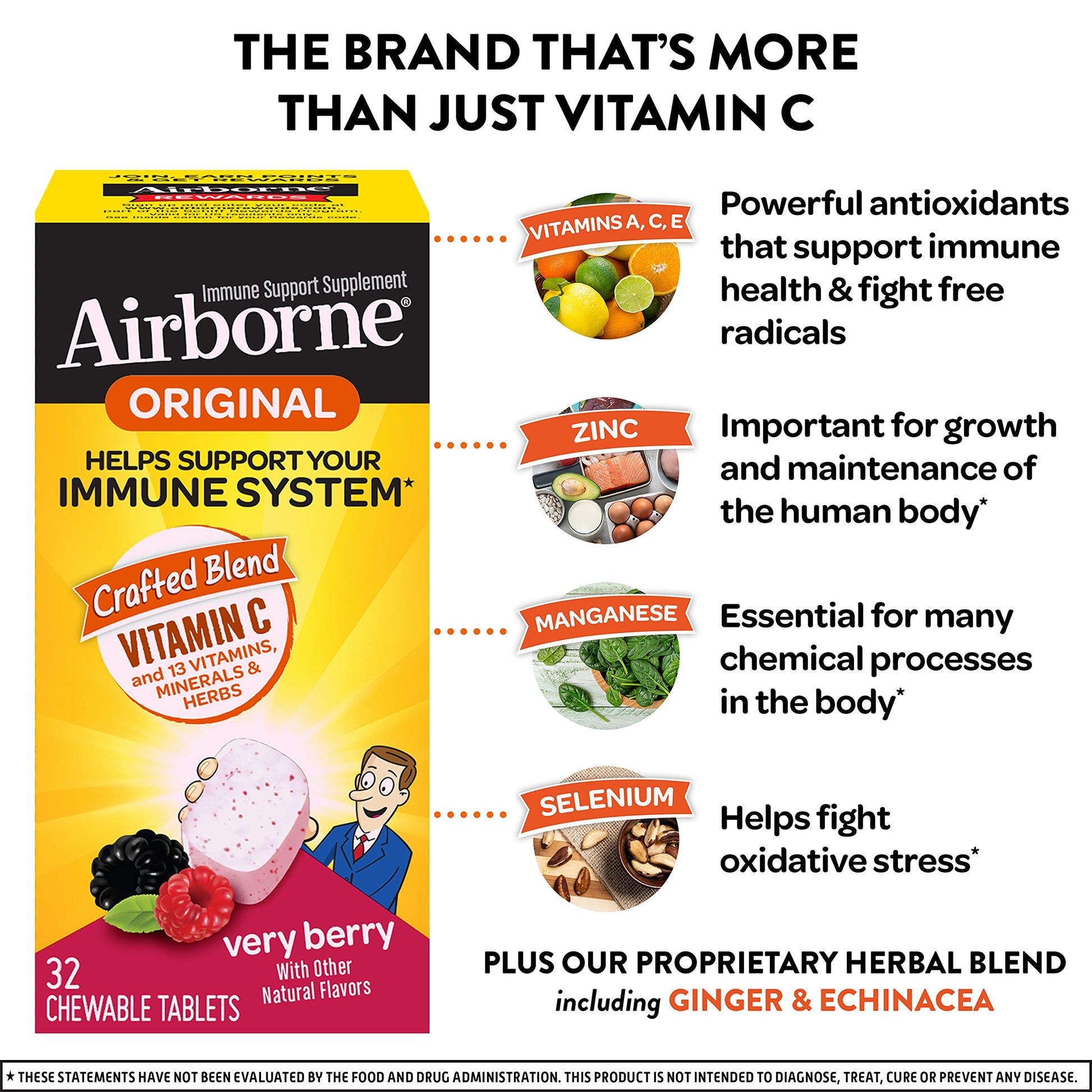 Airborne Original Vitamin C 32 Chewable Tablets Very Berry Lot Of 3 New Sealed