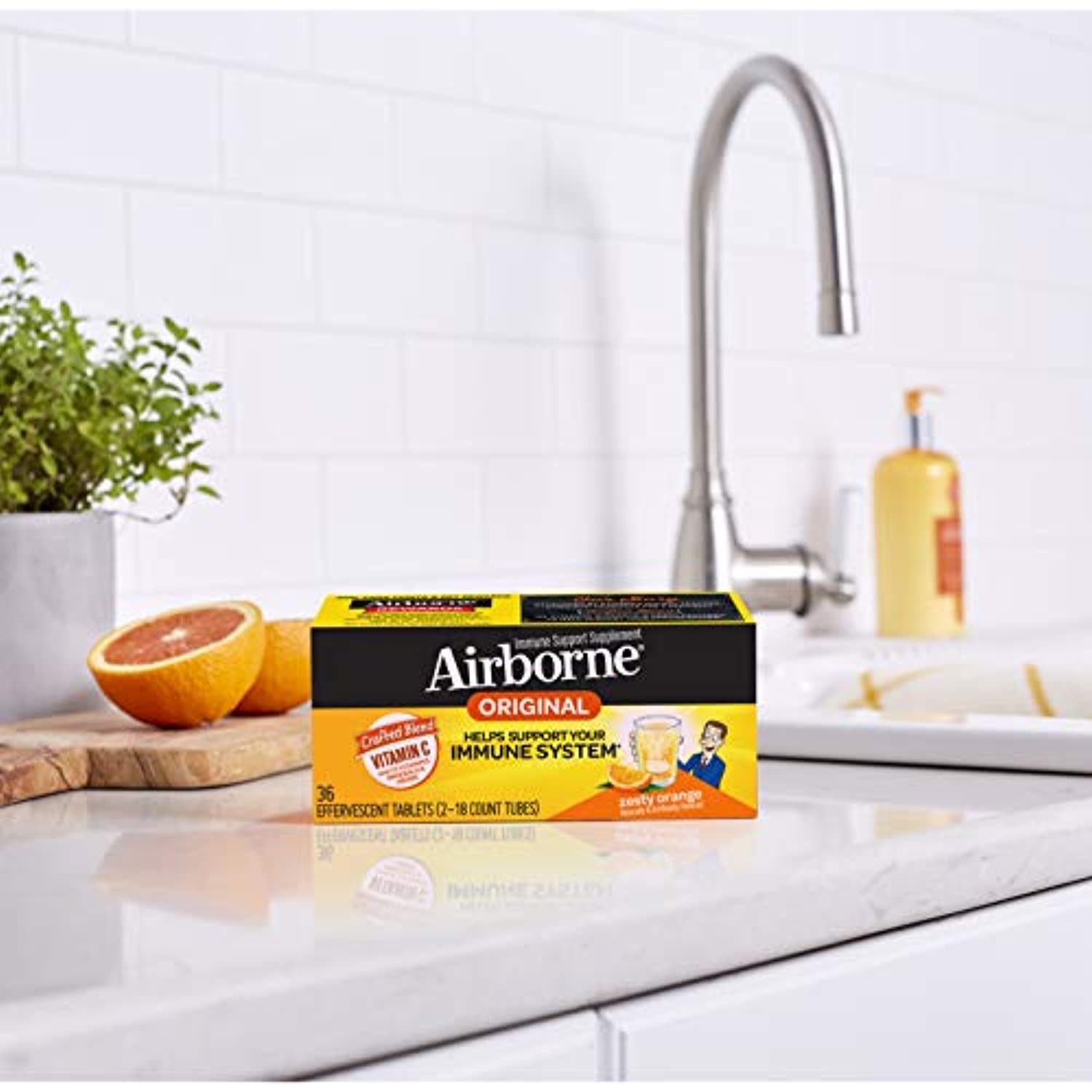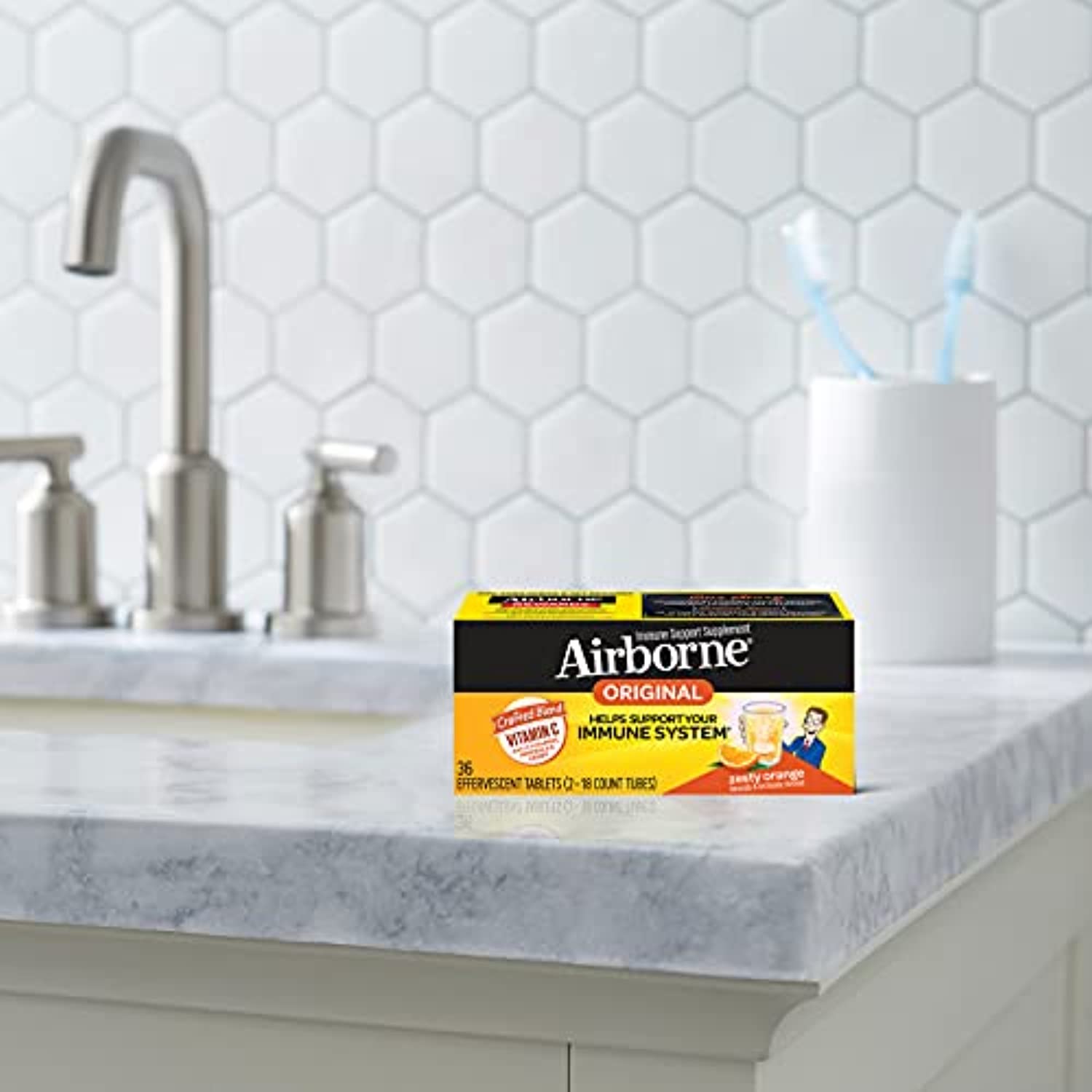Airborne Vitamin C 1000mg (per serving) - Zesty Orange Effervescent Tablets (36 count in a box), Gluten-Free Immune Support Supplement With Vitamins A C E, ZINC, Selenium, Echinacea & Ginger