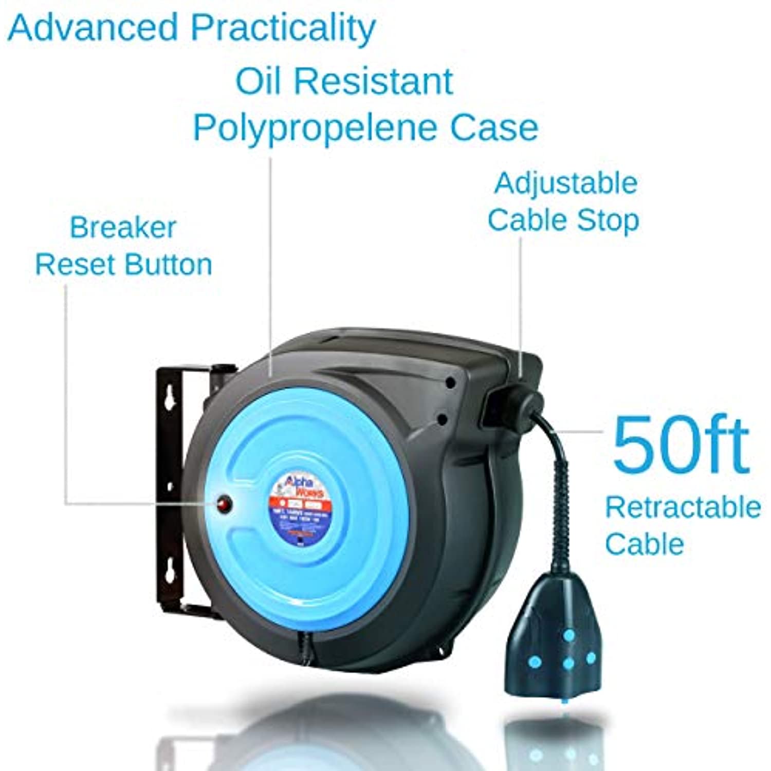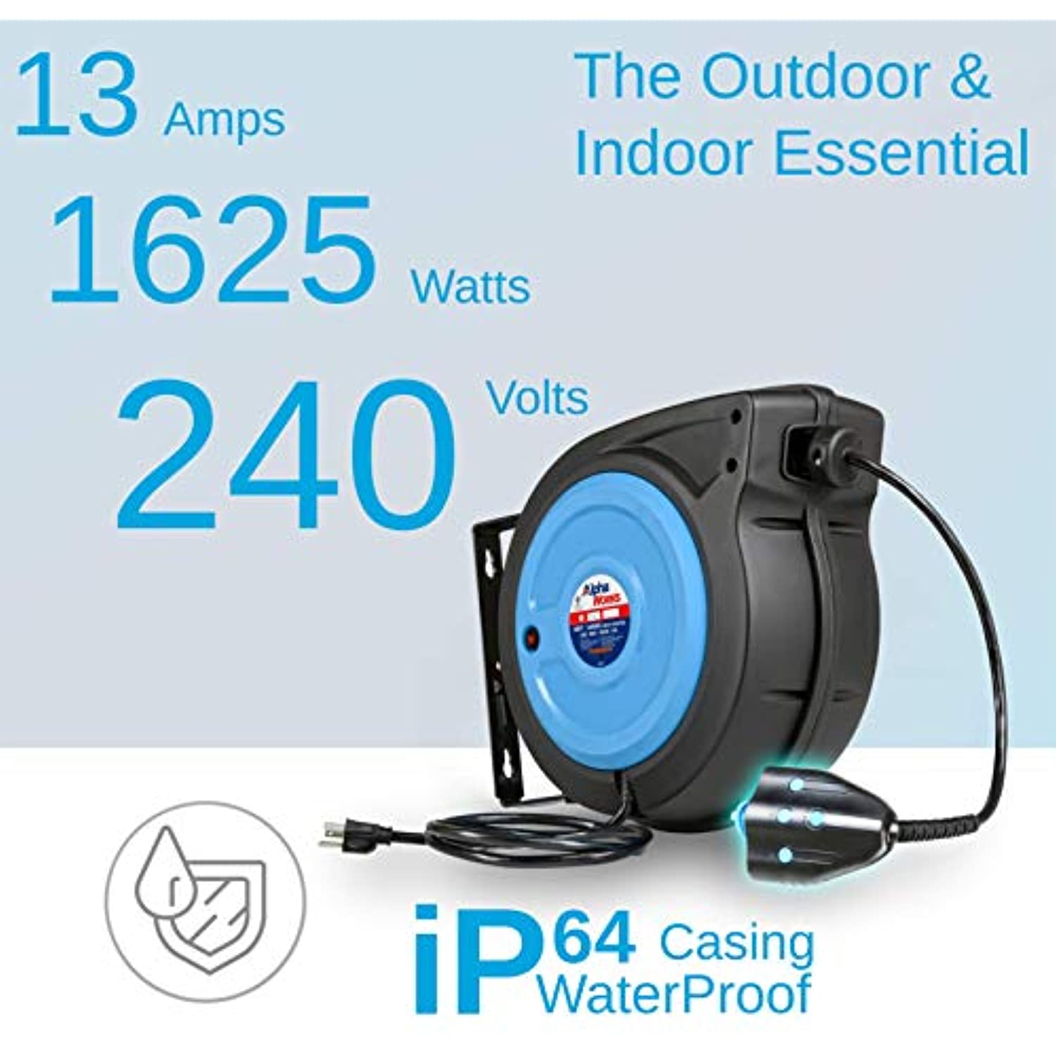 AlphaWorks Cord Reel Extension 14AWG x 50' Feet (2)IP64 Waterproof Wireless 125v