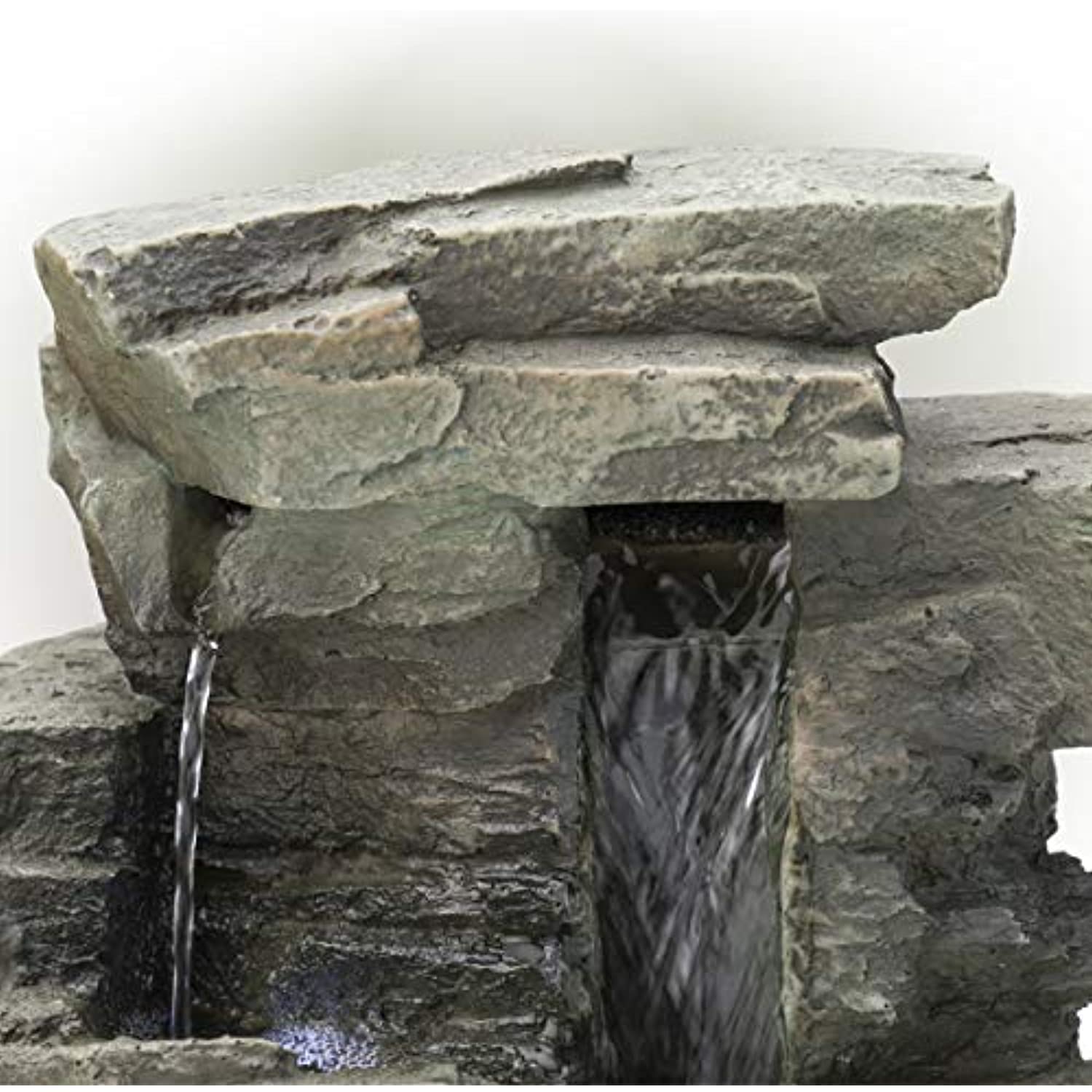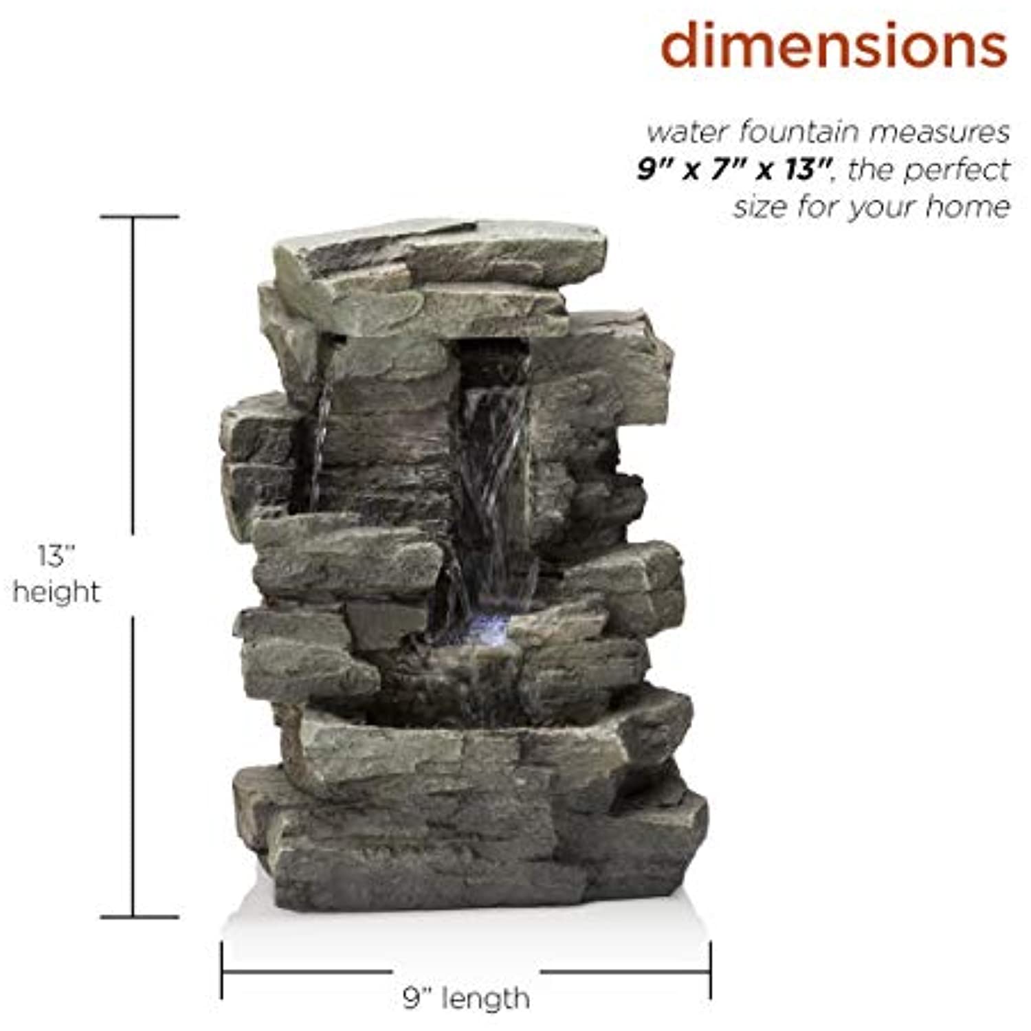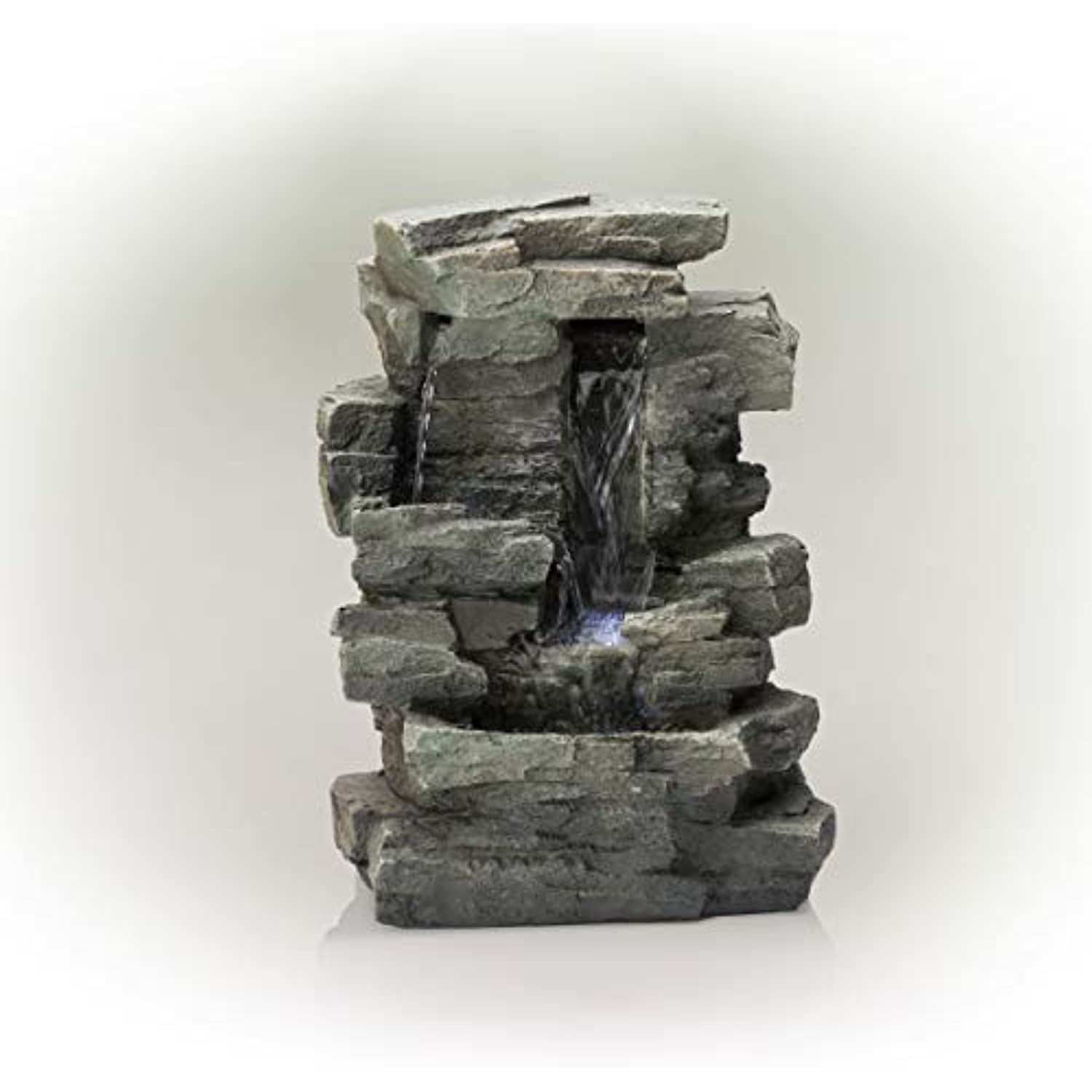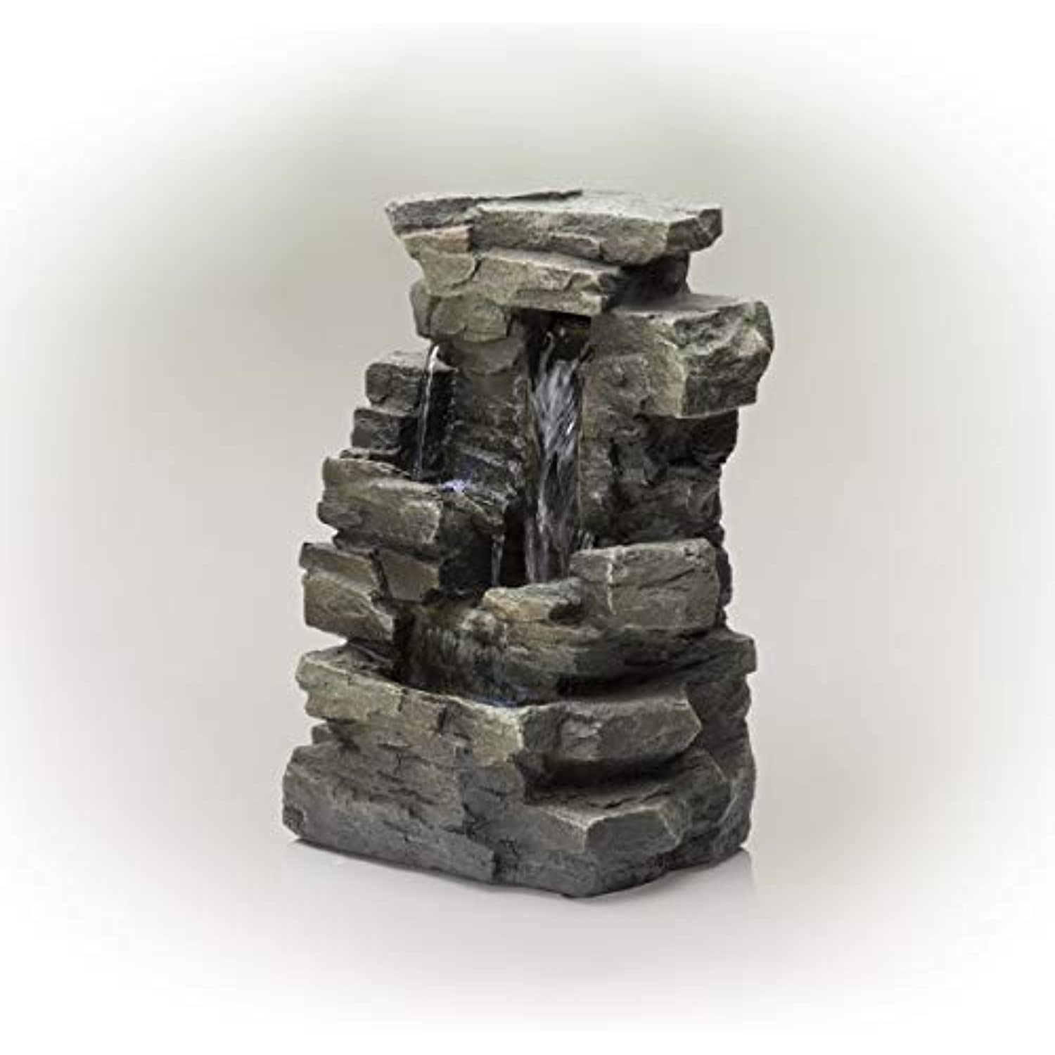 Enjoy the meditative sounds of nature indoors with the Alpine Corporation Cascading Tabletop Fountain! Take in the tranquil sounds of the water gently cascading over natural-looking grey stone in the comfort of your own home. This fountain is perfect for tabletops in your office, entryway, or out on your patio or yard. The resin, stone powder, and fiberglass construction is weatherproof, rust-resistant, and durable for years of quality use. LED lights illuminate your space, drawing attention to the relaxing water pools day or night for added ambiance. To use, simply plug into an outdoor outlet, fill lower level with water, and watch as the interior pump creates a lovely water flow reminiscent of a lush rainforest. With a 1-year warranty, you can be confident in the quality of your purchase. Fountain measures 9"L x 7"W x 13"H, perfect for tabletops. Alpine Corporation is one of America's leading designers, importers, and distributors of superior quality home and garden décor products. Alpine's award winning in-house design team continuously develops new and innovative "statements pieces" for your home and garden. Your outdoor living spaces will be the envy of the neighborhood with our wide assortment of fresh, fashionable and contemporary products, from beautifully crafted solar garden stakes featuring patented motion and fiber optic lighting technology to gorgeous glass and glow-in-the-dark birdbaths and feeders.