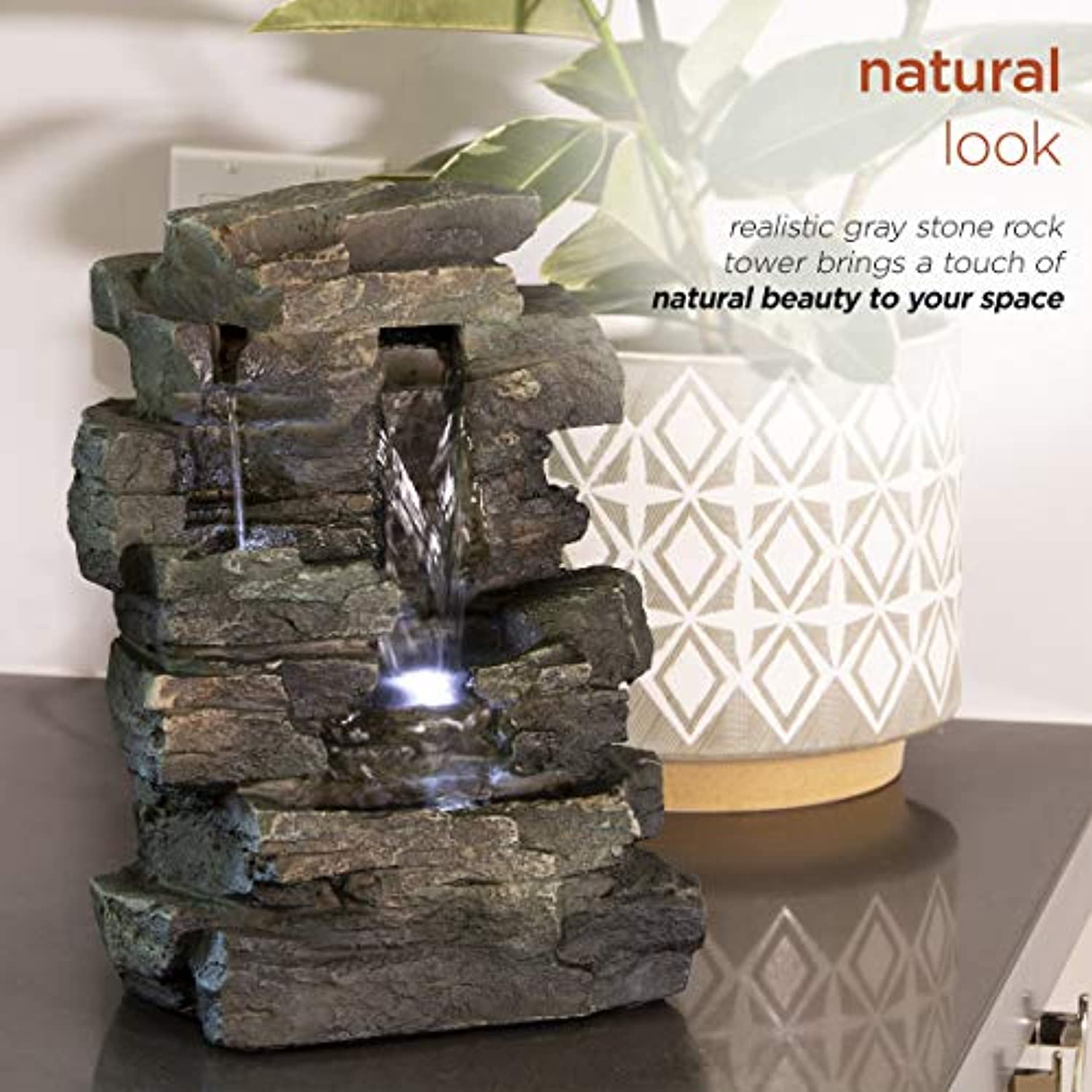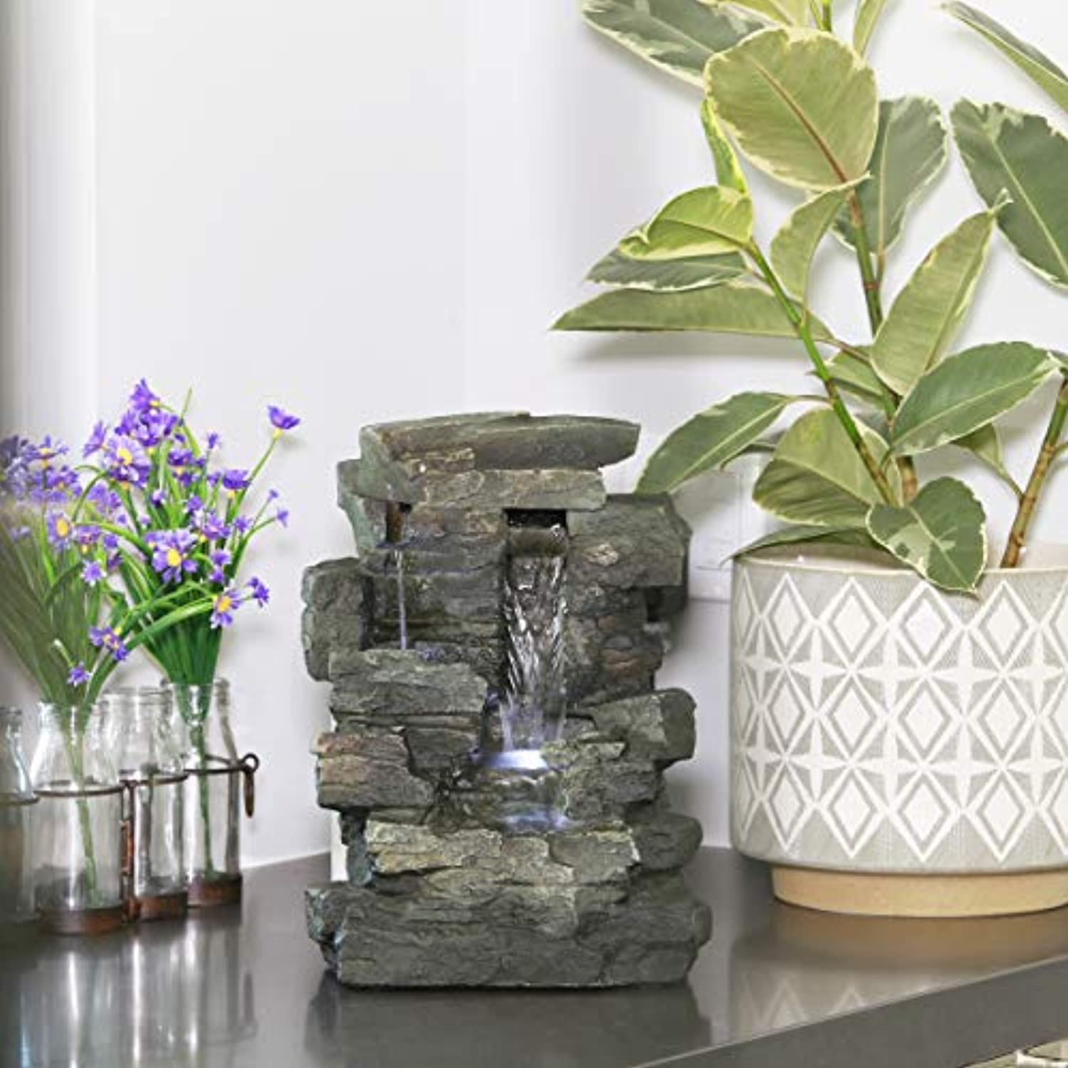 Alpine Cascading Tabletop Fountain with LED Lights- 13" Tall- Dark Grey open box