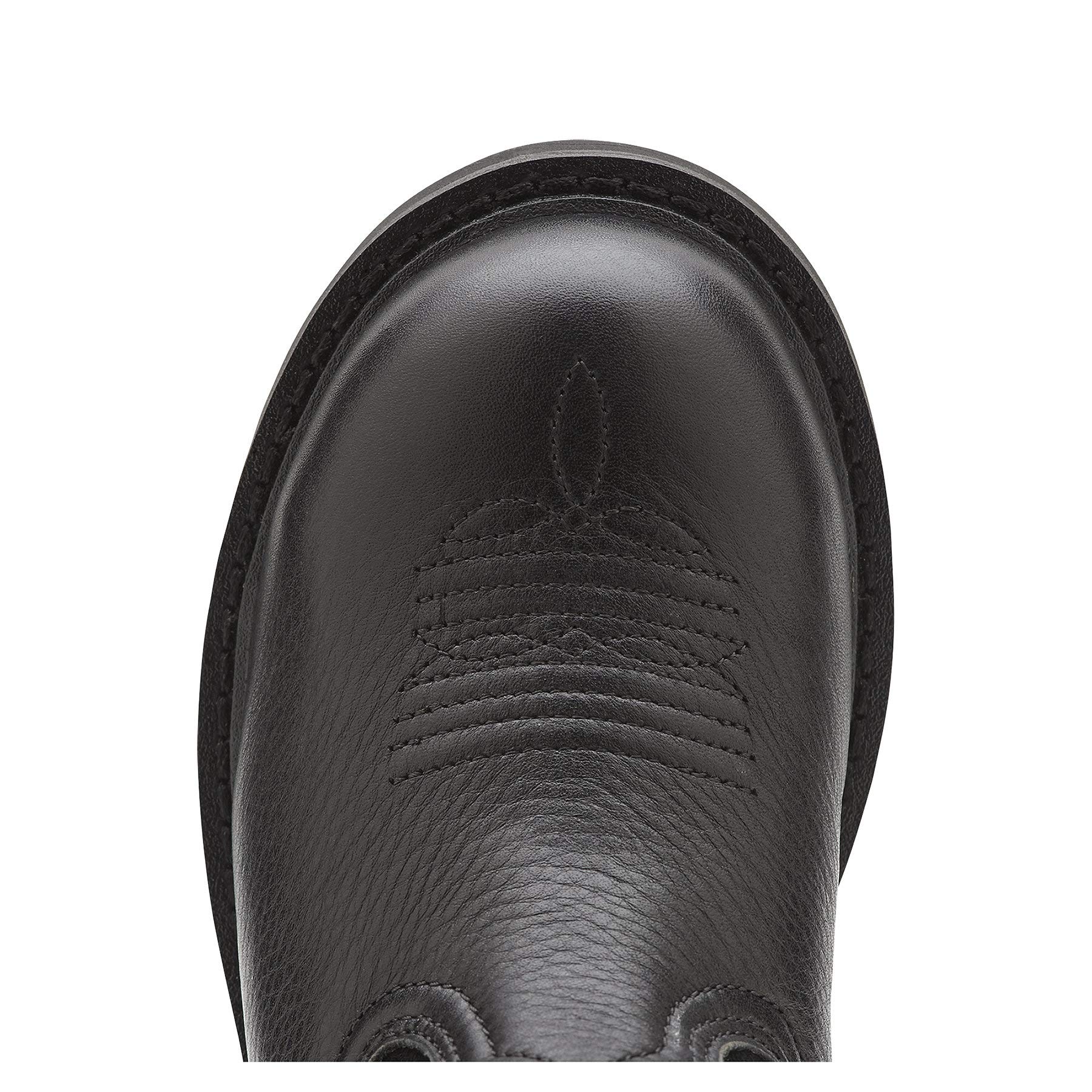 Fatbaby Cowgirl Steel Toe Work BootNo task is too tough for the cowgirl in these boots. This performance riding boot features a premium full grain leather foot and Ariatâ€s 4LR footbed, which provides outstanding support and cushioning for everyday wear. The Duratreadâ" outsole is oil-and-slip-resistant and wonâ€t leave behind any marks. With these stirrup friendly boots youâ€ll ride hard with the best of them. The steel toe is ASTM F2413-11 FI/75 C/75 EH rated.